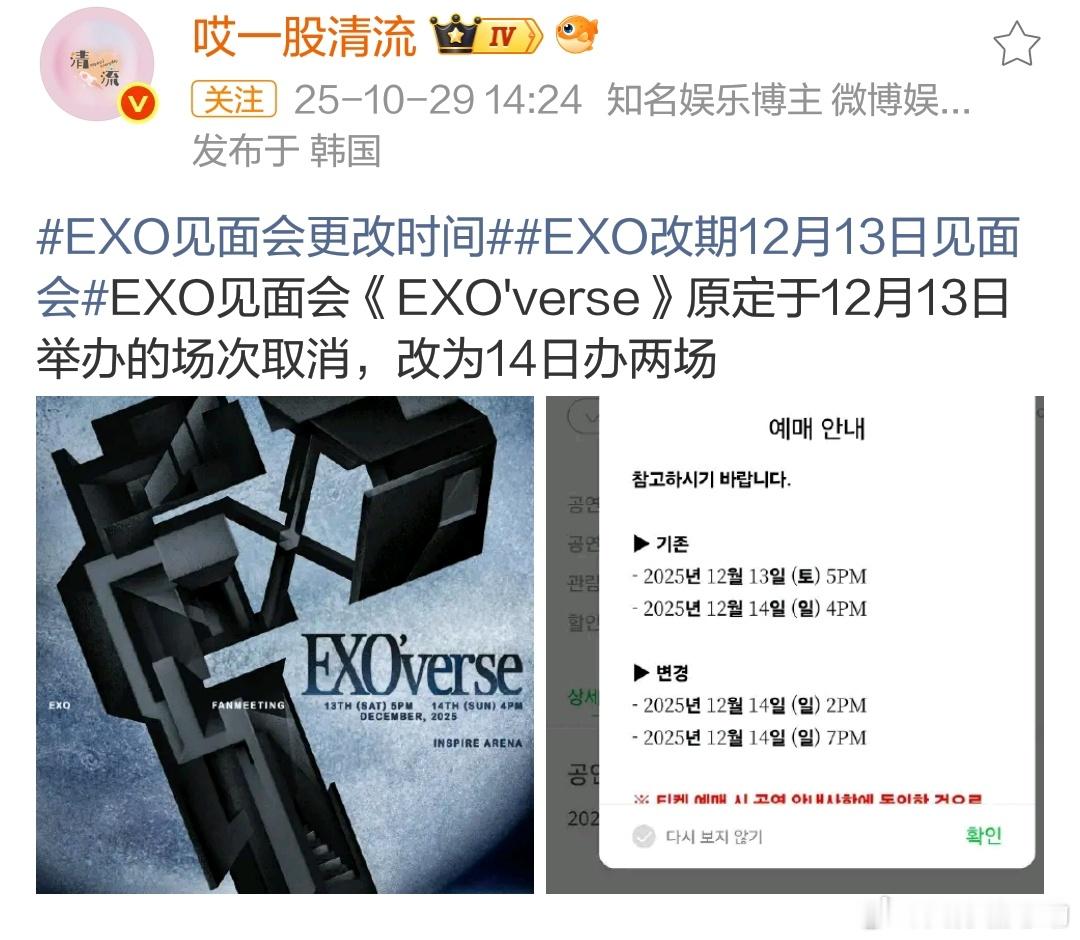 exo见面会改时间了,13号那场取消掉了,不知道当初抬杠我说就要在13号开没问题的人什么想法[挖鼻][挖鼻]