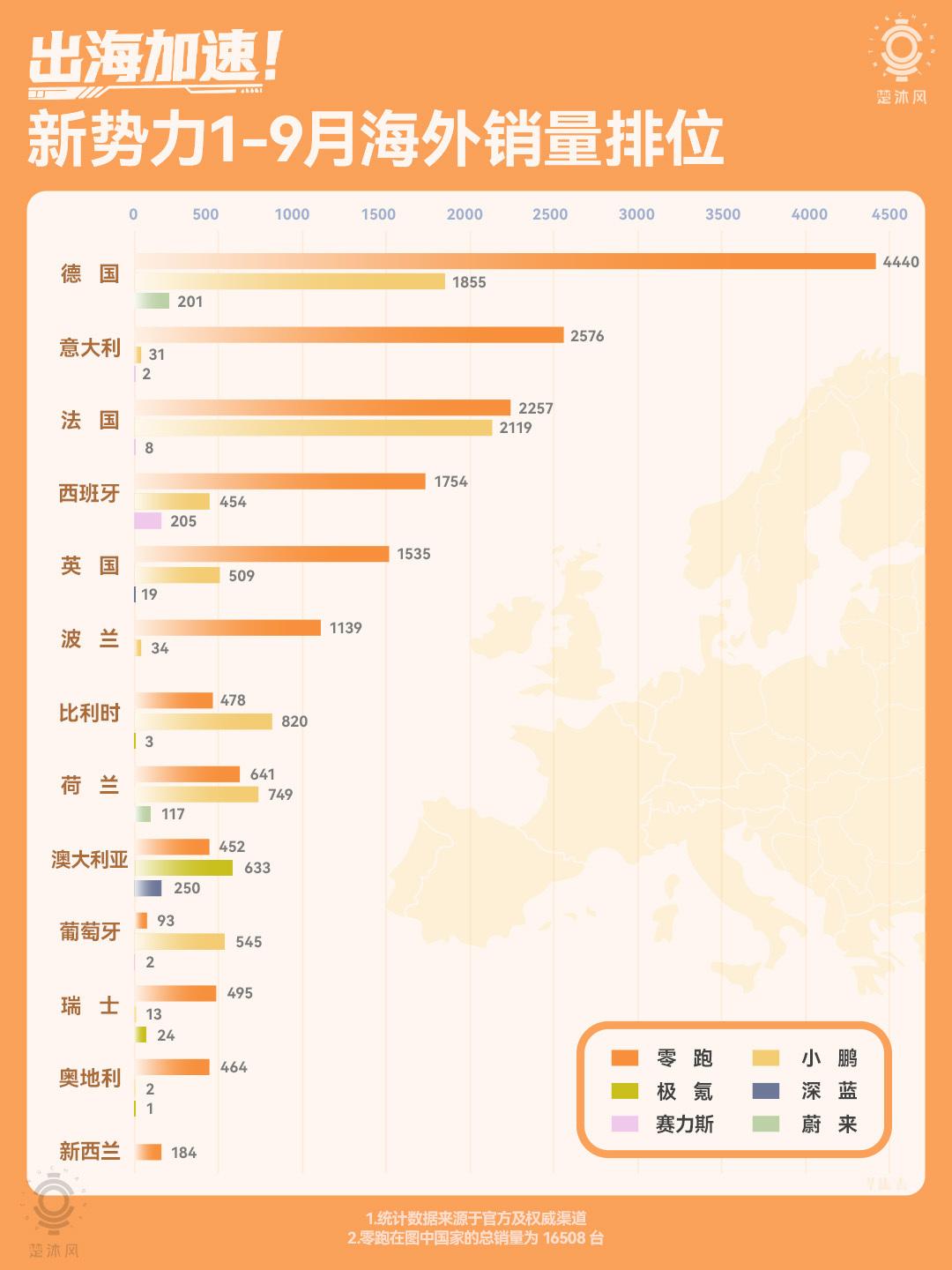 ︎●德国、法国、英国作为传统的欧洲三强,经济发达,也都有自家强势的汽车品牌,其他海外品牌想进去没那么容易,而零跑倒狠,直接拿下了这3个国家的新势力销冠;