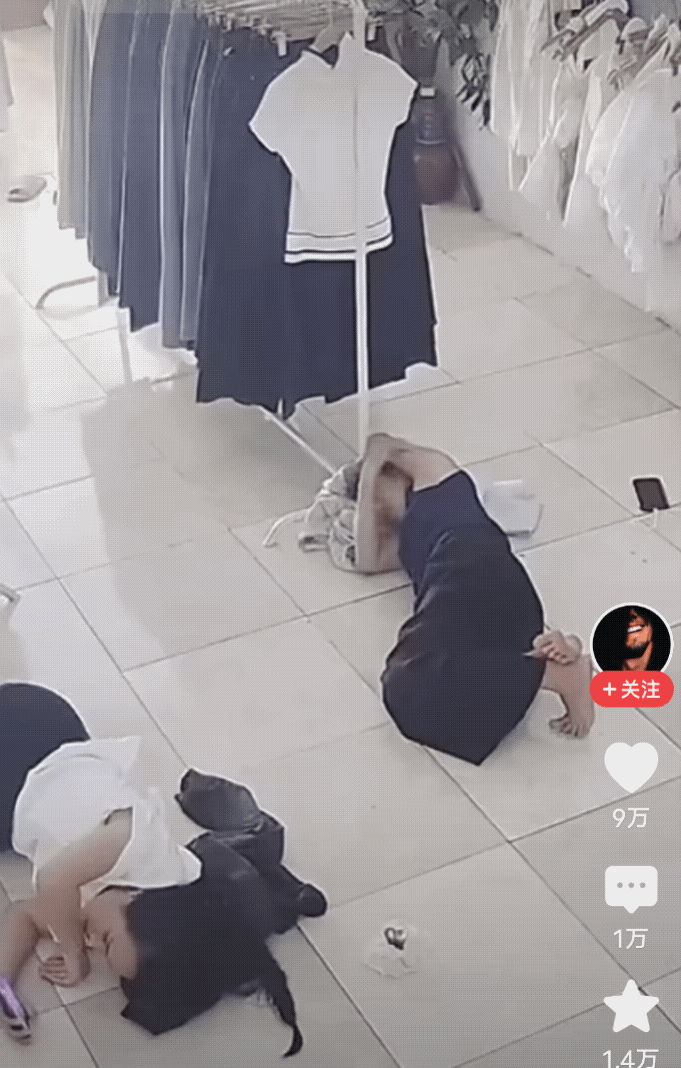 太滑稽了!炎炎夏日,一服装店内,两个女子为避暑,直接倒在地板上休息。但令她俩没想到,这时,一只半尺来长的小耗子突然窜了过来,直接跑进黑衣女子的左侧裤腿里,并且直往里钻。 顿时,女子感觉大腿上有无数个小爪子在挠,立既睡意全消,侧起头,眼睛看向皮肤刺痛的地方,惊吓之余,嘴里不自觉发出“嘿!嘿!”的声音,并且抖动左腿,希望能把小老鼠甩出去。 然而,小老鼠受到惊吓,茫然间在裤腿里来回乱窜,一时间,哪里找的到出口。 黑衣女子并不知道发生了什么,脸色变得刷白,果断站起身来,赤着脚,双手抓着裤子,叉开腿,蹦跳着往下狂抖。 不一会儿,再看地上,果然有东西从右边裤腿里掉落下来,原来是一只小老鼠,转眼跑向一侧,不见了。 而这滑稽的一幕,早已笑翻了旁边白衣女子,“啊,哈哈!”的笑声不绝于耳,震的屋里墙壁乱响。 虽然这一事件并不是啥稀奇大事,但对黑衣女子来说,这足以令她久久难忘了。 有个网友坦言,他也曾有此经历,只不过老鼠在裤子里被当场抓到,让他亲手掐死了。 真是个狠人,若是我,有可能和黑衣女子一样,肯定早被吓得六神无主了。 人生本就是一场旅行,受到小小的惊吓,无伤大雅,日后回忆起来,这样的小插曲,也是笑意满满的。 你说呢?