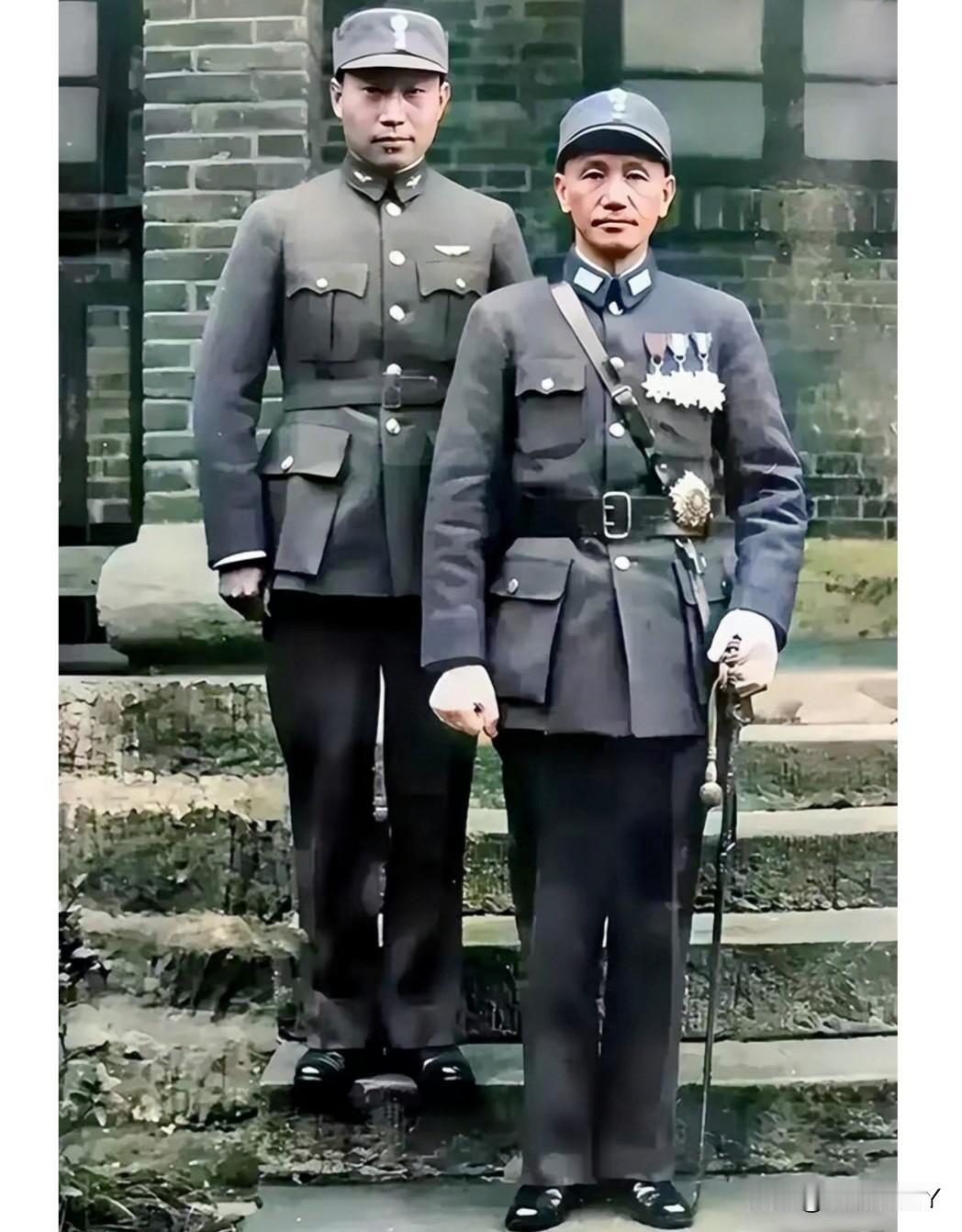 这才是蒋中正与他外甥的真实模样,不是演员饰演的角色!这张照片拍摄于1945年,彼时舅甥二人在重庆园林。