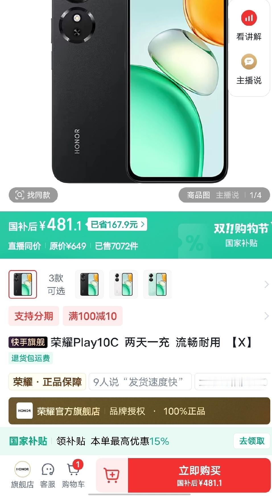 这不是同一个手机吗,一口气3万台,直播间瞬间就卖没了,怎么今天显示销售只有7000多台,是退了2万多吗。 当时说是489上架,实际把国补算进去了。 今天又掉价了,到手价481.1,又少了8.5,要知道,当时,直播间可是说了,外边卖1299,有截图有真相。480多买回去,就说1299买的,可以炫耀一把。。 也不知道哪里卖1299,太高了吧。这得赚多少钱啊,也不知道1299能卖多少台,为啥不同平台差这么多。 1299-481.1=817.9 差800多块钱,究竟是卖1299的血赚,还是卖480多的血亏了? 不对,商家卖的是500多,确认收货,商家入账500多,因为国补的钱,也是钱啊。