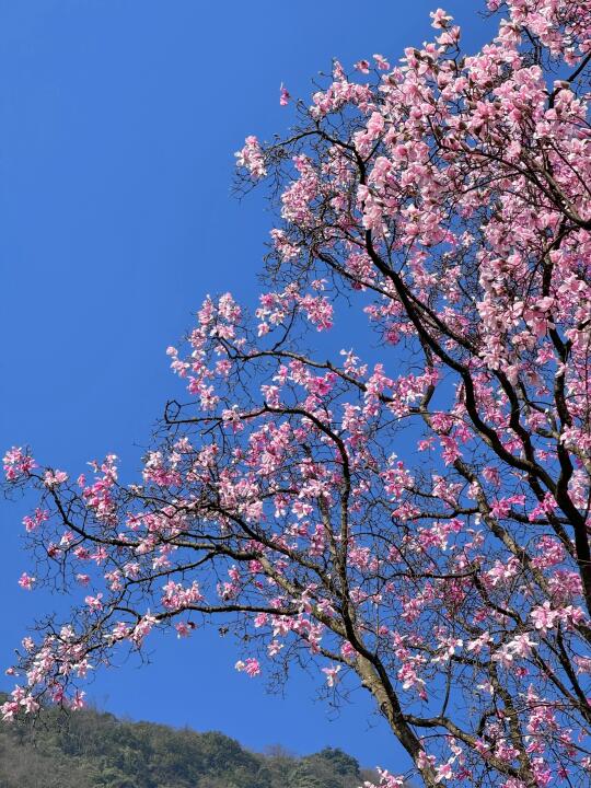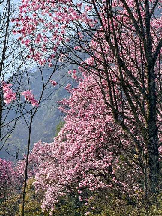开了!开了!!! 绵阳九皇山[搜索高亮]的辛夷花开爆了 放眼望去漫山遍野都是辛夷花~ 蓝天白云下,抬头看直接美哭了😭😭😭