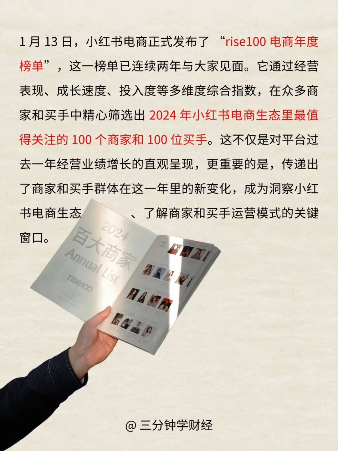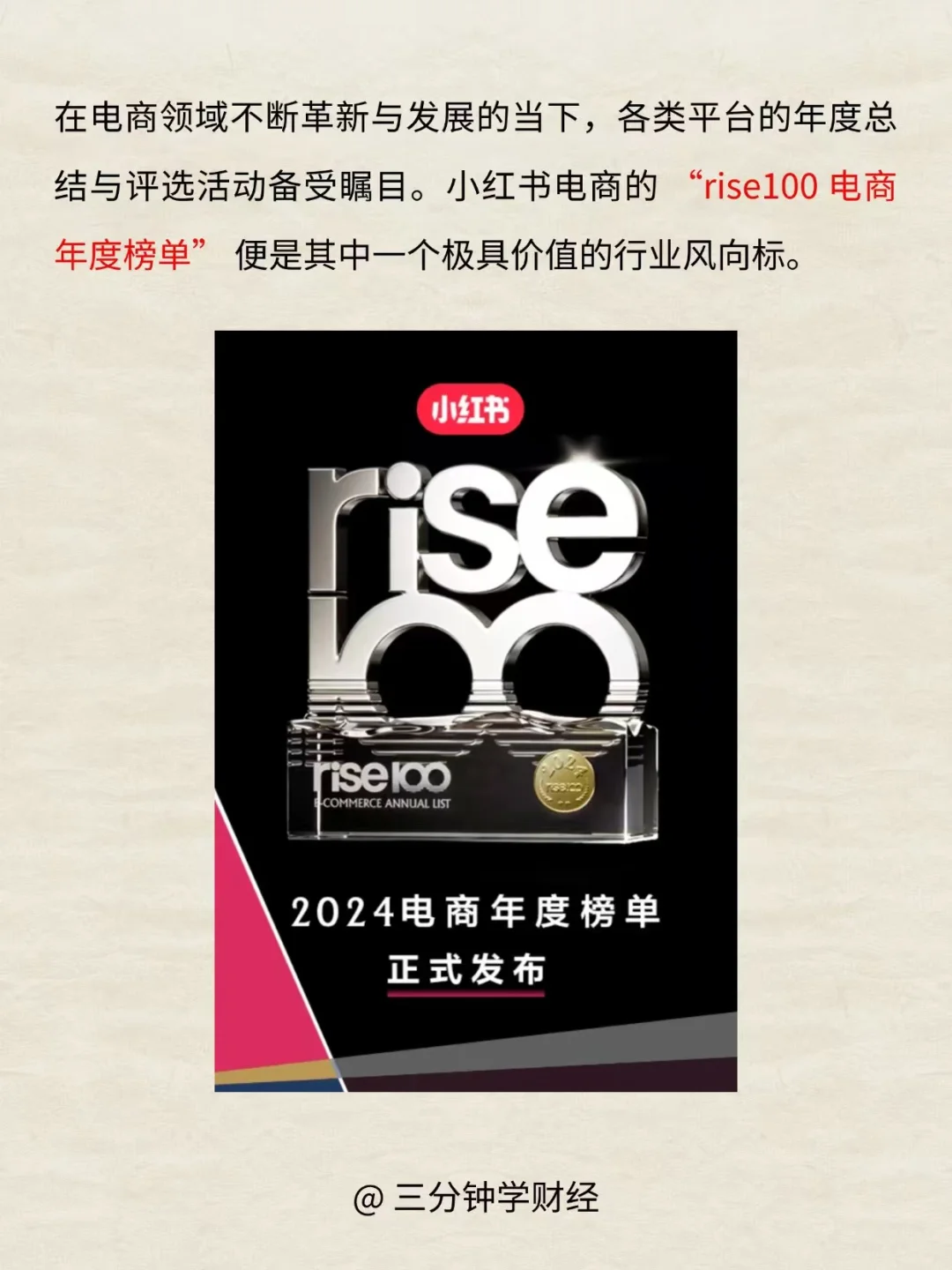 rise100电商年度榜单,评选出2024年电商生态最值得关注的100个商家和100位买手。