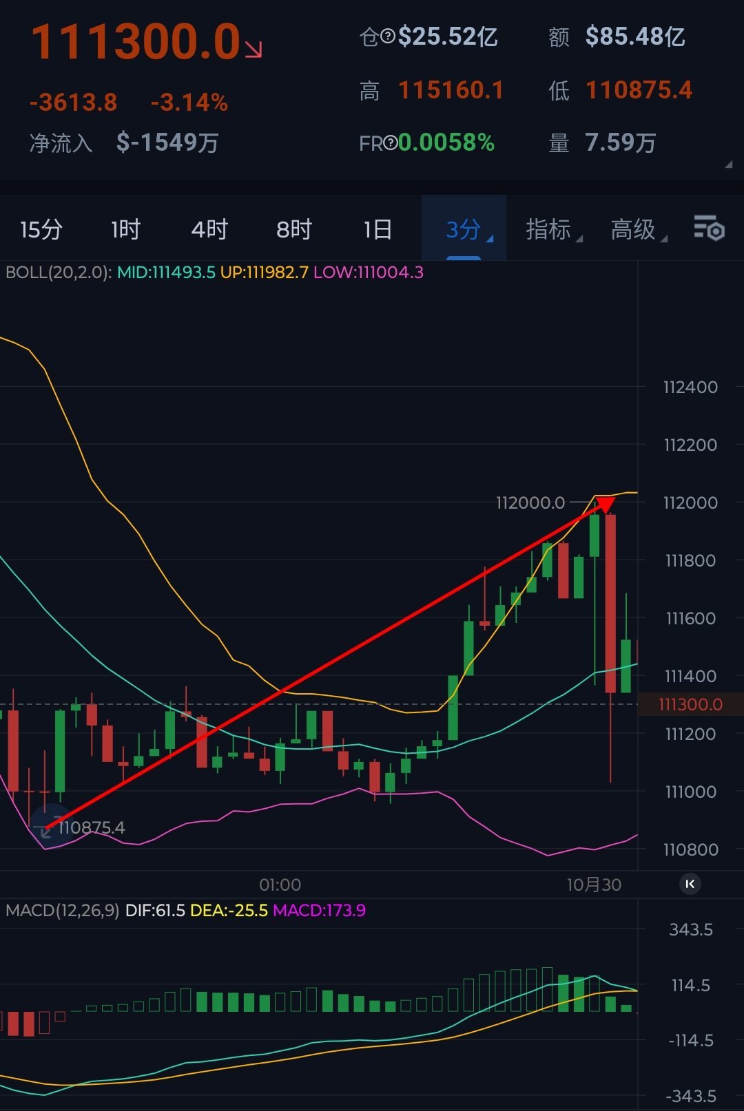 接下来关注两个点11万整数支撑,以及上方11.3万一带强压。