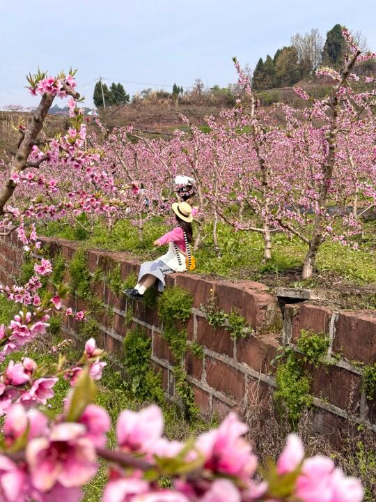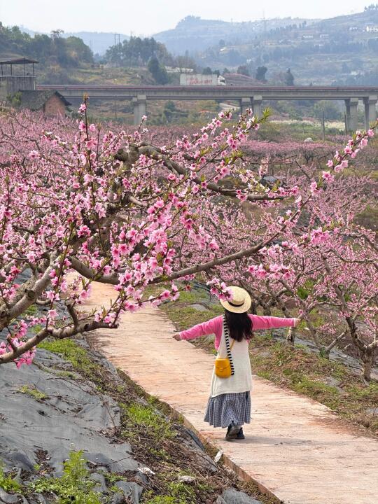 等了一年 终于等到龙泉山桃花盛开了 一眼望去全是桃花,太好看了! . 📍:龙泉山宝狮村[搜索高亮] 🎫:免费!!!直接去就行 🚌:地铁2号线龙泉驿出,转公交862路到石碑 子下,也很方便! 🚘:(开车的话建议停在山下点,山上不好停车还会很堵) . 今天刚去了才回来! 人真的很少,跟包场一样!随手拍都很好看! 很多人在桃花林里露营🏕️野餐🧺徒步🚶 真的好美好chill~ . 拍摄最佳地址地址见🔍最后一张图! 也可从栈道走到对面山,那里桃花开得也还可以!