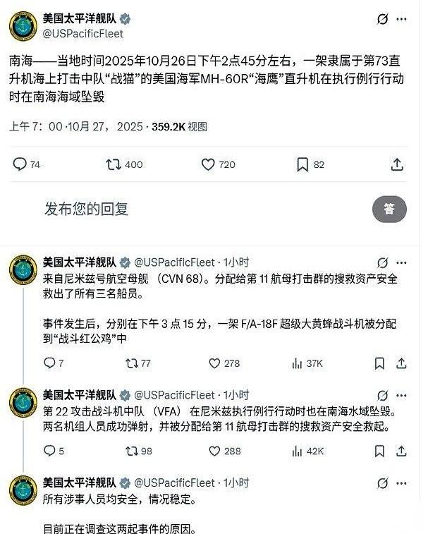 一架直升机,一架战斗机,噗通、噗通,手拉手掉南海里了。 就尼米兹航母上的。 连个理由都懒得编,直接“原因不明”。 你说这南海,是不是有什么魔力? 前几年,潜艇过来,咣一下,也不知道撞哪座“海底神山”上了。 后来F-35过来,扑腾一下,非要洗个冷水澡,捞都捞不起来。 这回倒好,直接组团跳海了。 我有时候真琢磨,这事儿吧,你用科学解释不通。 可能就是老话讲的,水土不服。 老觉得别人家的院子好,非要进来溜达,可这院子里的风、院子里的水,它不认你啊。 咱也不知道那片海底下到底有啥。 反正就感觉,挺神秘,也挺……懂事儿的。