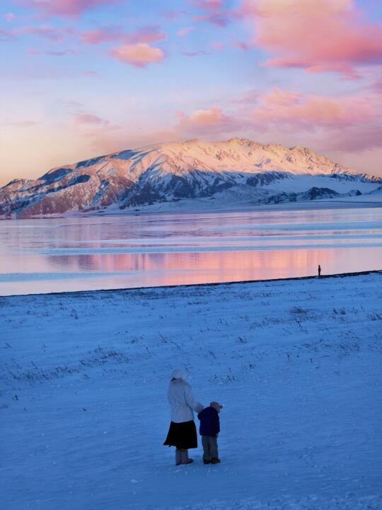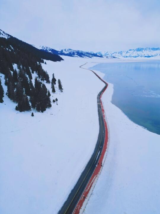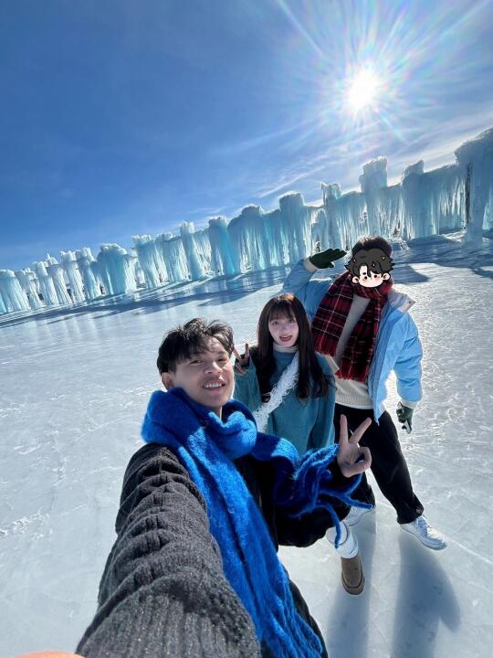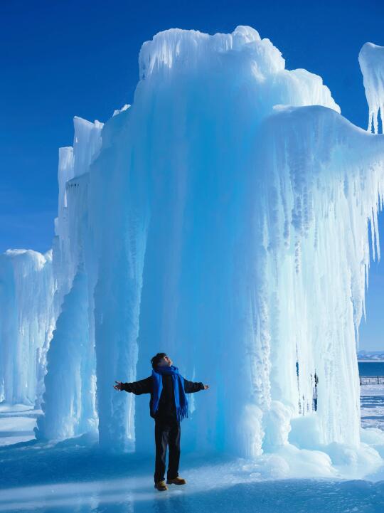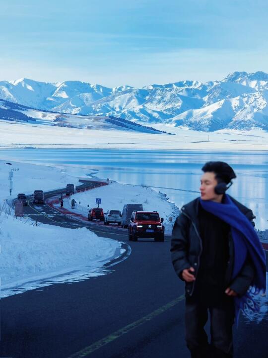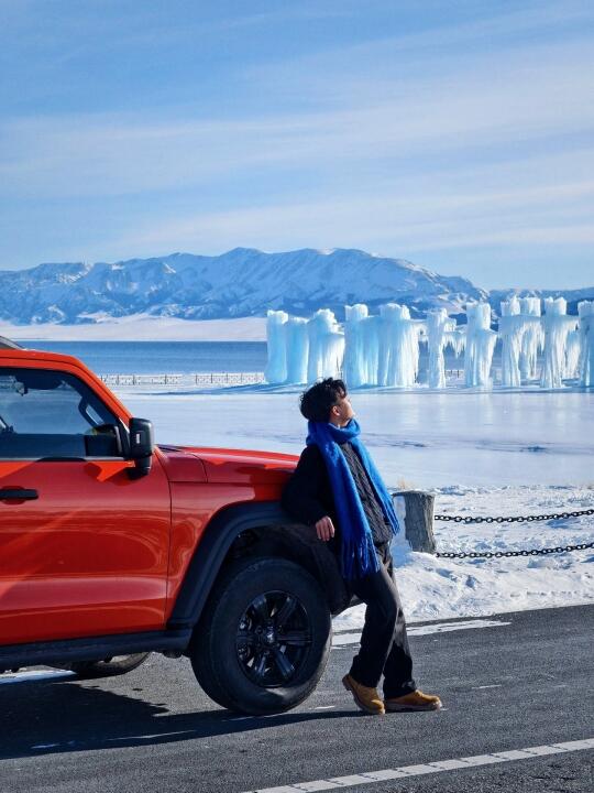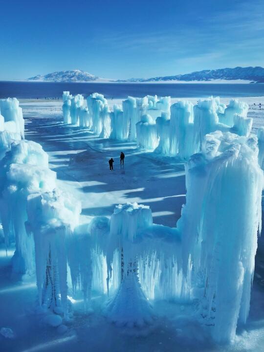 ❷蓝冰挂:图一的位置,赛里木湖点将台往东门方向走不远就看到了。