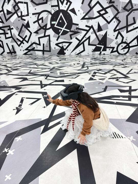 之前玩过“消失的法老”对这种沉浸感体验已经有了概念,它会调动感官 “欺骗”你的大脑,让你感觉自己就是在眼前看到的场景中。虽然身处在一个大空间里的平地上,但遇上剧情里有台阶或者是坡度,都感觉脚下是真的有触感。这次玩生命的纪元,我越走越深入海里,直到突然蹲下去,发现自己已经在潜水了,甚至伸手好像能摸到海底,鱼类就在手边游来游去~朋友拍摄的第三视角,手无形的摸来摸去也太搞笑了[笑哭R][笑哭R]