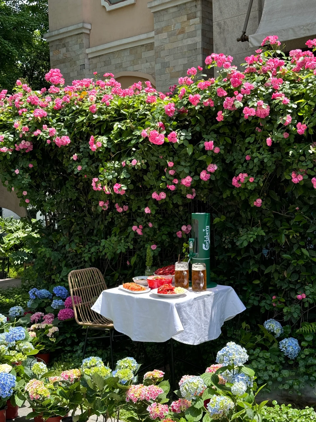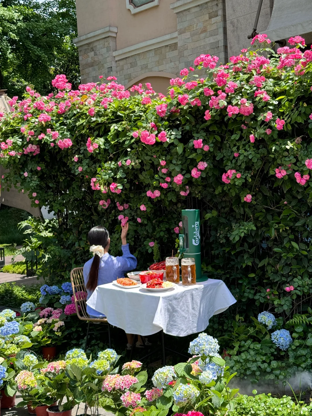 在成都 发现了一家开满蔷薇花的餐厅💐 还没进门就被一整面蔷薇花墙吸引 花开的正艳,随手拍几张,真的美到犯规!