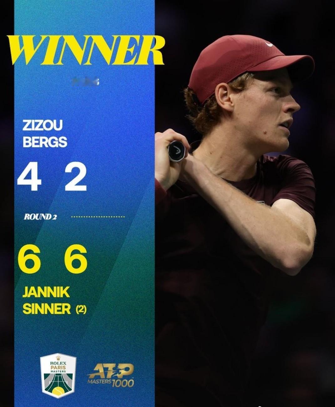 阿卡意外爆冷出局,辛纳不惧巴黎霉杯重燃争夺世界第一希望,2-0迎来开门红。 ATP1000巴黎大师赛第二轮,2号种子辛纳6-4/6-2击败贝尔赫斯。 他在首场比赛中很好地适应了慢速场地条件,室内快速硬地22连胜。 他将和塞伦多洛争夺一个8强席位,如果周日能捧起巴黎大师赛冠军,他将短暂重回世界第一。