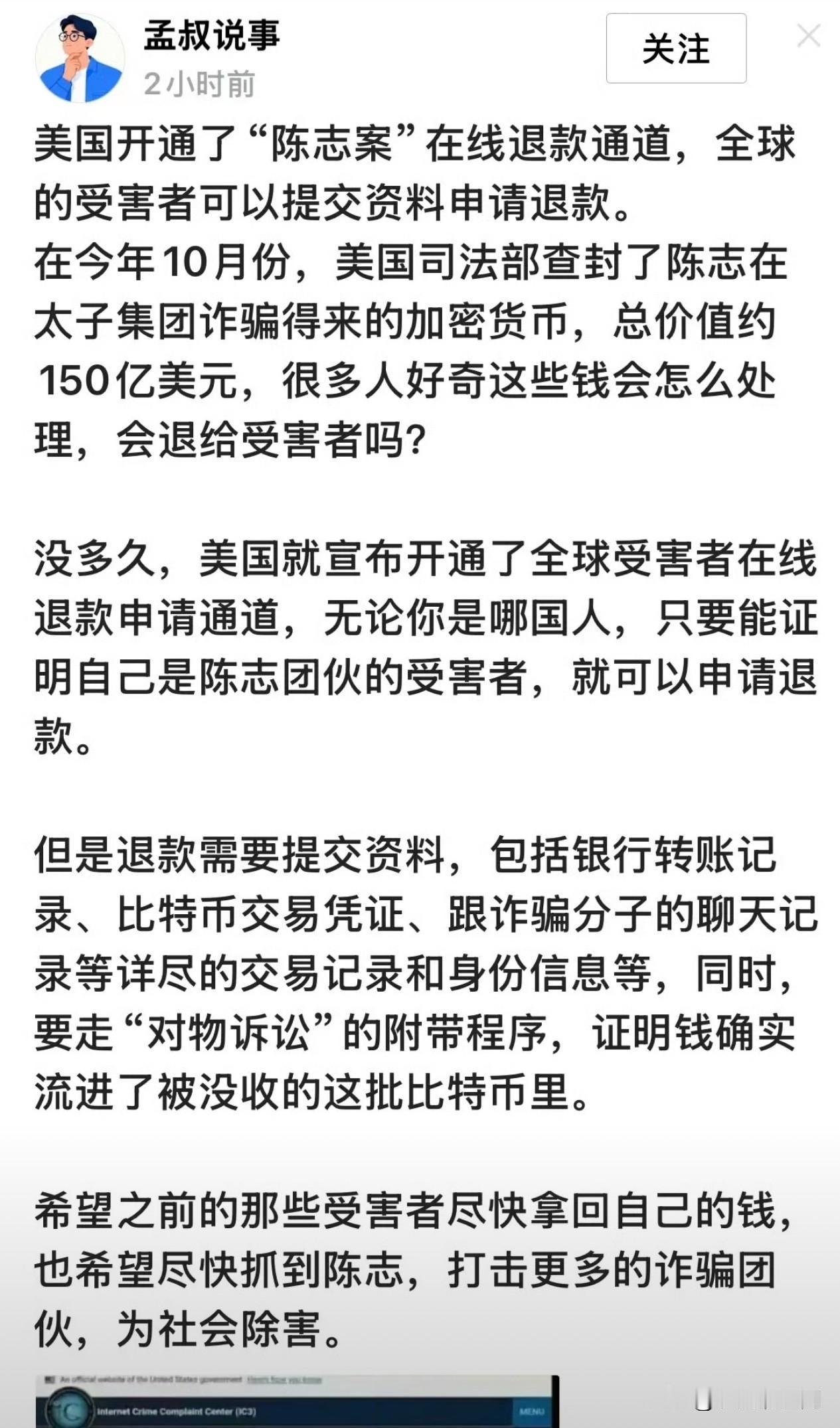 被陈志集团骗取的钱,美国已经开通了在线申请退款通道。