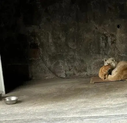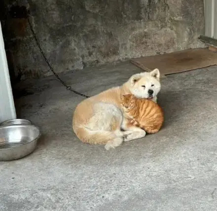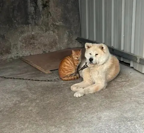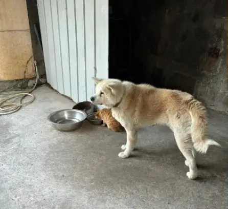 工厂狗狗收留了一只流浪猫狗狗的心思都写在脸上了