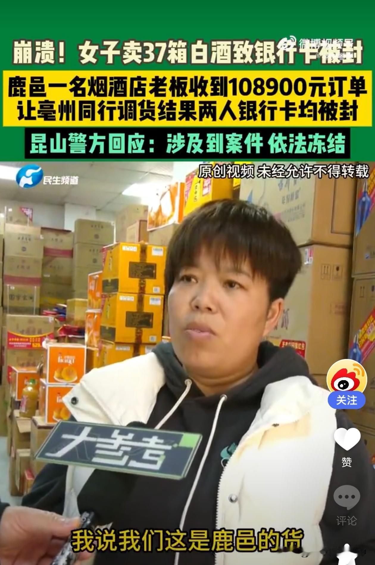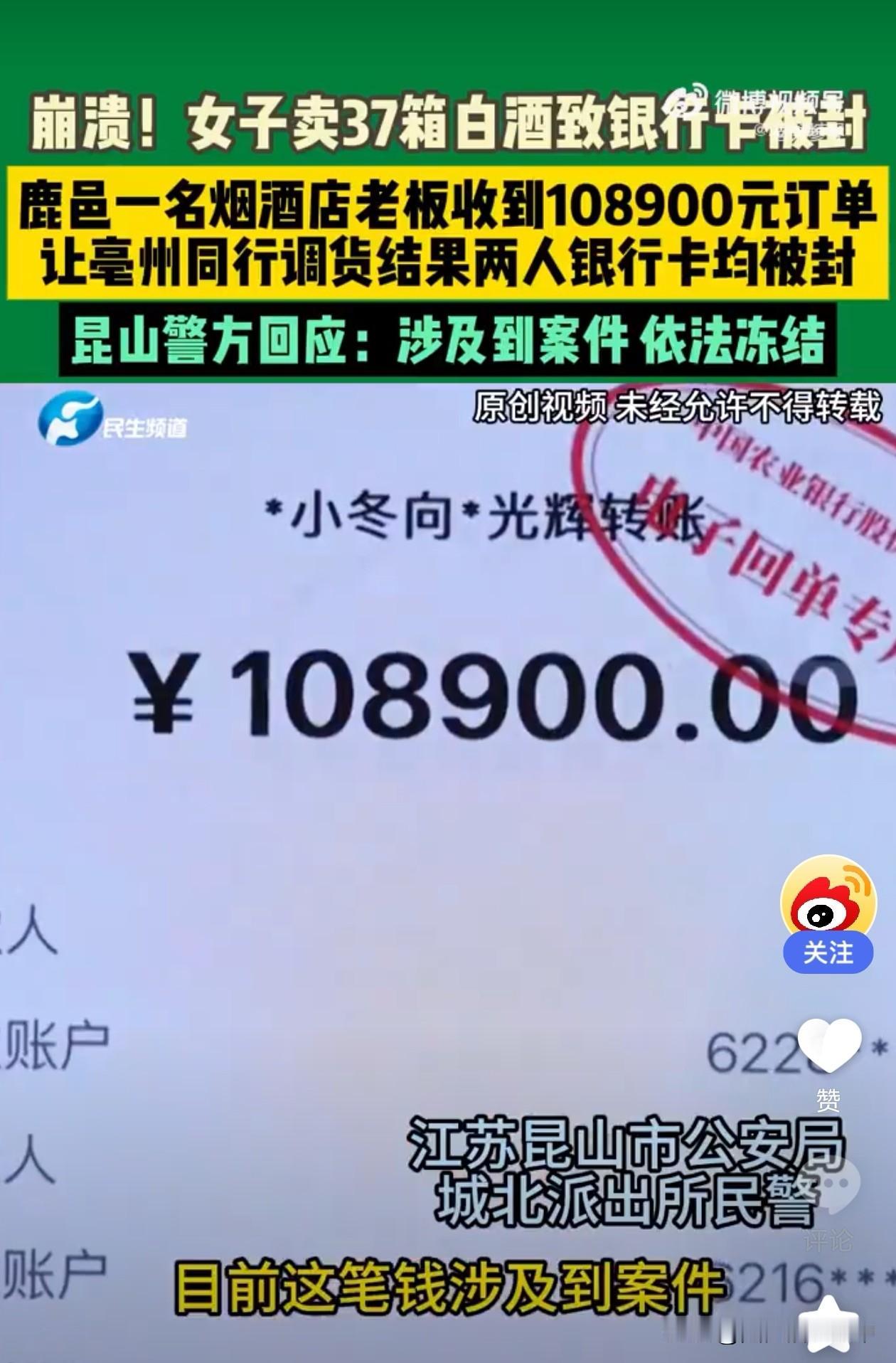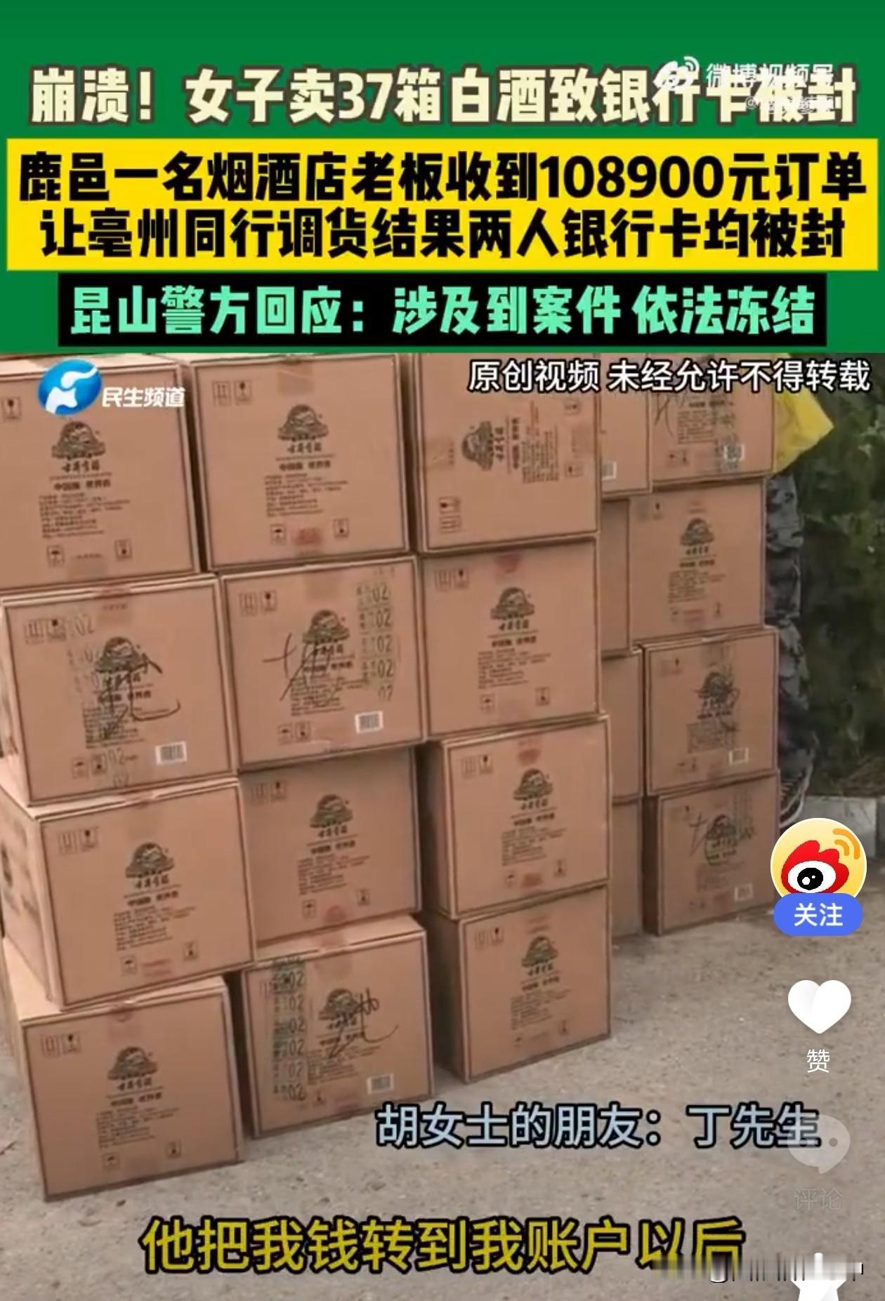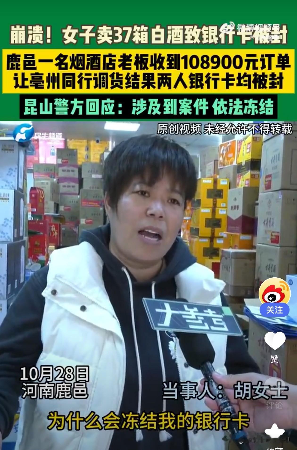 白酒交易变“陷阱”?河南女子被骗,银行卡却被封!网友:商家还能信吗? 近日,河南鹿邑的一位女老板胡女士遇到了一件让人心烦意乱的事情。事情的起因很简单——她在正常做生意,突然被警方冻结了银行账户,理由是资金涉嫌诈骗。 让人觉得不可思议的是,胡女士只不过是帮客户卖了37箱白酒,怎么就牵扯出了“涉诈”呢? 事情的经过是这样的:几天前,一位自称来自亳州十八里的人联系胡女士,说要购买一大批白酒,总价超过十万块。 考虑到订单金额不小,胡女士问了对方的具体信息,但对方只说自己来自外地,不能提供详细身份。为了不丢失这笔生意,她把订单介绍给了同行丁先生,自己只收取了介绍费。 交易顺利完成,胡女士也收到了付款。可是,没想到好景不长。几天后,她和丁先生的银行卡都被封了,警方打电话告诉他们:这笔钱涉及诈骗,账户被依法冻结。 原来,骗子利用胡女士的账户,将诈骗款转了进去,然后用她的白酒变现,整个过程看似正常,却暗藏陷阱。 令人气愤的是,警方的冻结措施让胡女士措手不及,她觉得自己只是普通商家,没做任何违法行为,却成了“被调查对象”。 她甚至跑去媒体求助,希望能解冻账户或追回货物,但警方表示,案件还在调查中,暂时不能放行。 这件事引发了不少网友的讨论。有些人觉得,骗子的手段层出不穷,普通商家根本难以识别资金的“真伪”。 也有人感叹:现在做生意,风险真是太大了,连正常交易都可能“踩雷”。更有人提出疑问:警方冻结账户的同时,难道就不能同步查查货物去向吗?为什么要让无辜的商家“背锅”? 其实,这个问题背后折射出的是整个打击诈骗的难题。一方面,警方需要依法办案,冻结涉案账户;另一方面,普通商家缺乏风险识别和防范措施,一旦遇到类似“订单陷阱”,就可能陷入被动。 我个人觉得,解决之道在于:商家要加强风险意识,签订正规合同,核实买家身份;银行和公安部门也应建立快速反应机制,尽快判断账户是否涉案,避免无辜商家长时间蒙受损失。 同时,相关部门也应推出更多针对普通商家的培训和保护措施,让他们在面对复杂的交易环境时,能多一份保障。 这起事件提醒我们,诚信经营固然重要,但在当下这个充满变数的商业环境里,防范意识更不能少。 希望警方能在打击犯罪的同时,也能兼顾商家的合法权益,让“正道”不再难行。 大家怎么看?你觉得商家在面对大额订单时,应该采取哪些措施来避免被牵扯进去?对警方的处理方式,又有什么建议?欢迎留言分享你的看法!买酒防上当 收酒新骗局