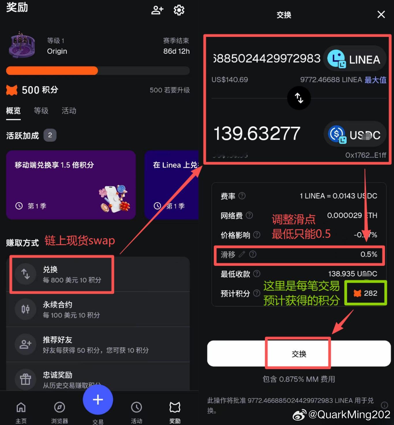 🔸链上现货交易swap,每 800u 可以获得10积分