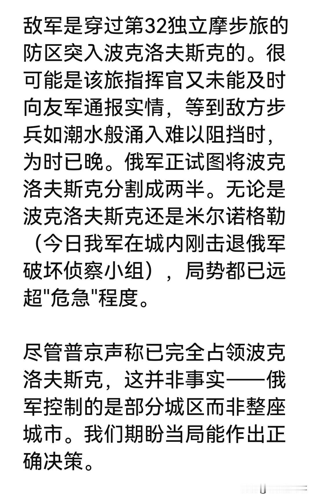 乌克兰信源(包括TSN记者尤利娅·基里延科)报道称,在乌克兰前线报告中出现了一个可怕的谎言。那就是由于乌军第32旅谎报军情(据称该旅部队曾擅自离开阵地),俄军得以快速进入波克罗夫斯克市(红军村市),当地局势“危急”,同时乌军第25旅已被包围。 乌克兰问题 乌现状 乌军情报泄漏 乌造谣 俄乌战争长期拉锯俄罗斯如何缓解后勤压力