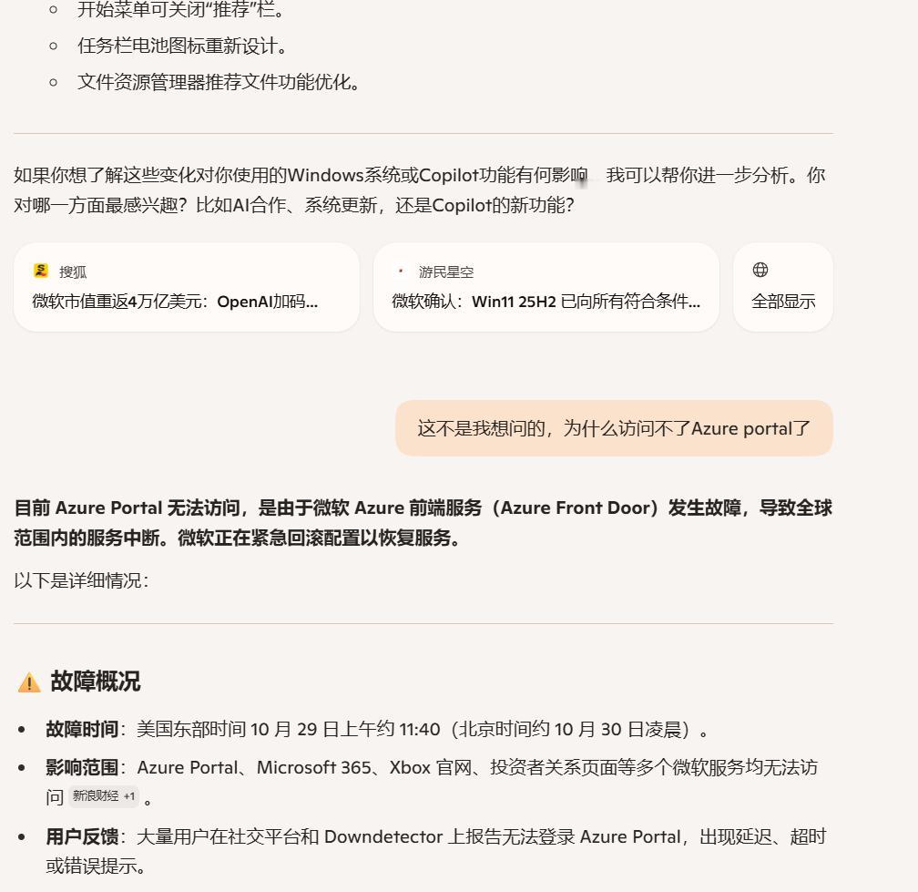 微软的服务又访问不了了[捂脸],Copilot这信息权重更新速度还是不够快啊,智商是有但是不太够啊,还需要我指明了具体服务