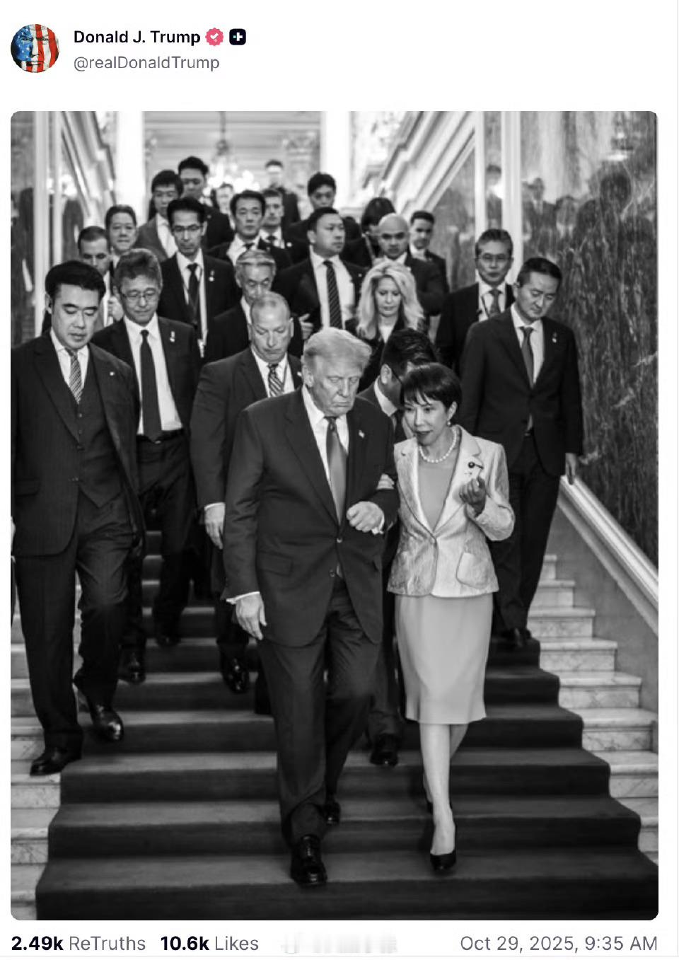 特朗普离开日本前,在自己的社交账号发布的照片。