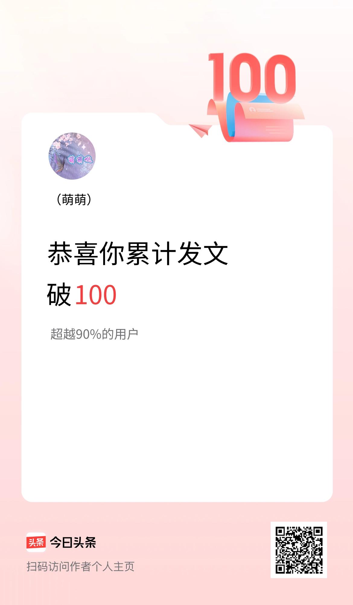 我在头条累计发布内容破100啦!