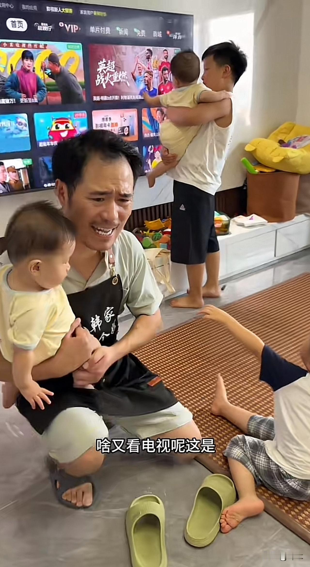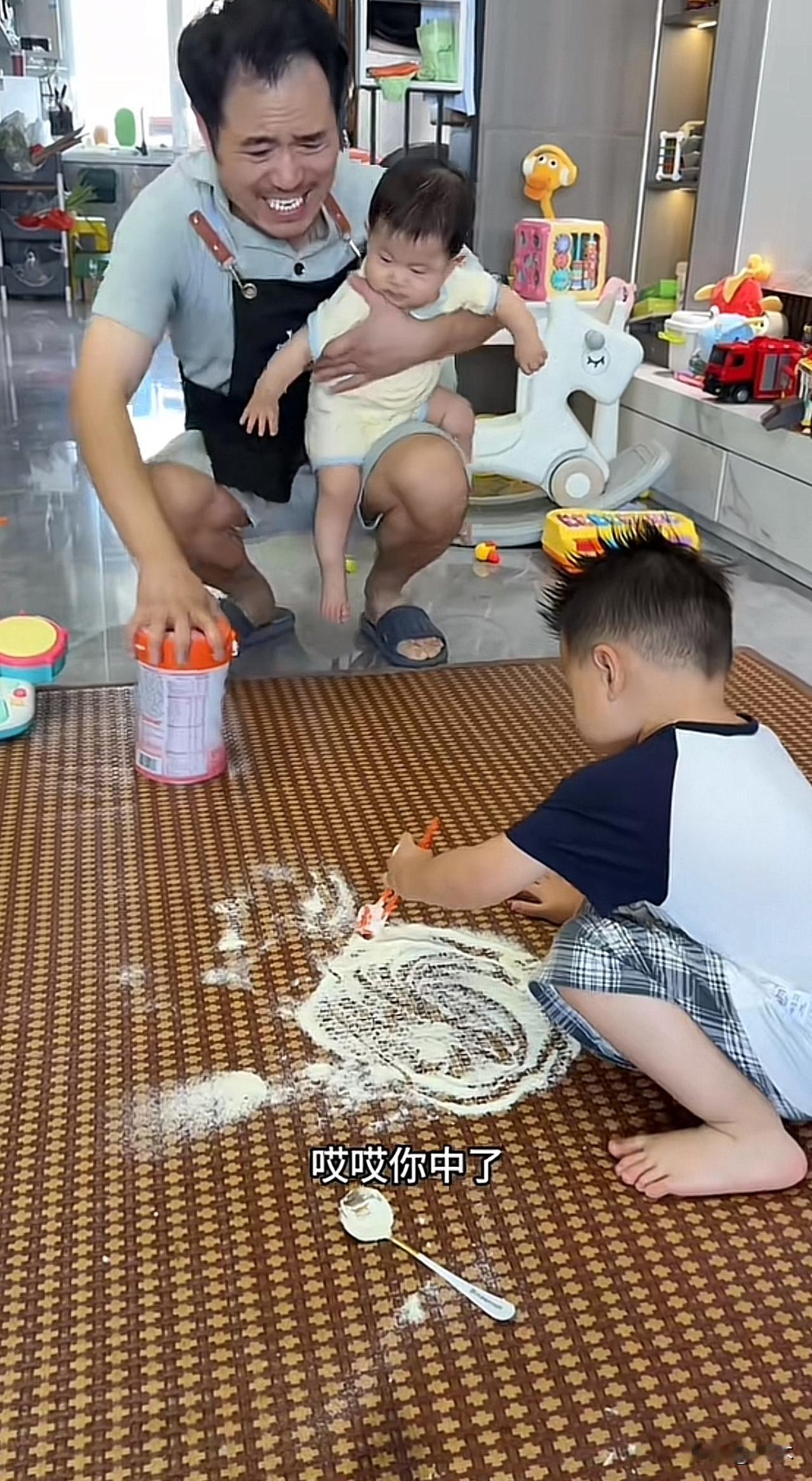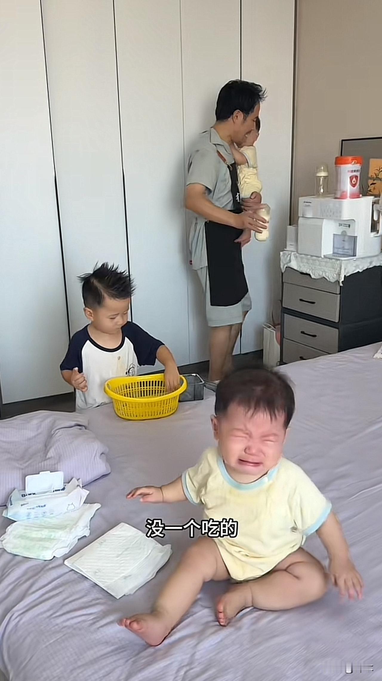 奶爸一人带4个娃,妈妈在外挣钱养家。 每分每秒都是在崩溃的边缘,围观的人却都在纷纷大笑。孩子带的很好,但有个稳定情绪很难。让宝妈们如释重负,谁带谁知道。 孩子静悄悄,可能在作妖。一不留神,就干出惊天动地的大事。 奶爸崩溃的说,从早到晚,没有一刻停歇的。早上的碗还没来得及洗,就要做午饭。 家里的卫生永远做不完,刚搞完,一会给糟蹋的如垃圾场。想让大的带小的,小的哭得更厉害。 每个孩子都得关注到,不然争起宠来要命。完全不分任何场合,越忙越来,越乱越来。 这个奶爸在线劝生,不生你永远体会不到孩子多的感受。这样的家庭很好,谁有能力谁做事,谁擅长谁来。 自己要求的多生,那就自己带。不过还是得量力而为,毕竟孩子不是宠物,得尽心尽力。 爸爸带娃 丈夫带娃