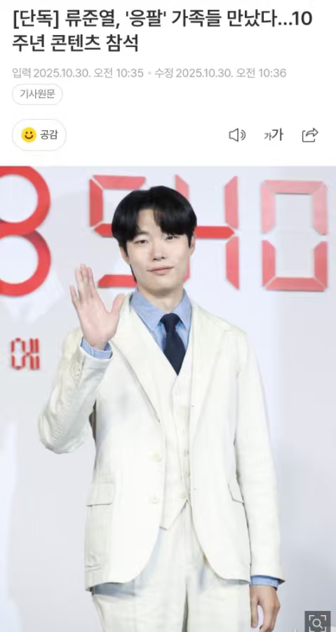 柳俊烈将参与请回答1988团综拍摄 柳俊烈调整了日程,将参与《请回答1988》十周年的部分拍摄[哆啦A梦害怕]