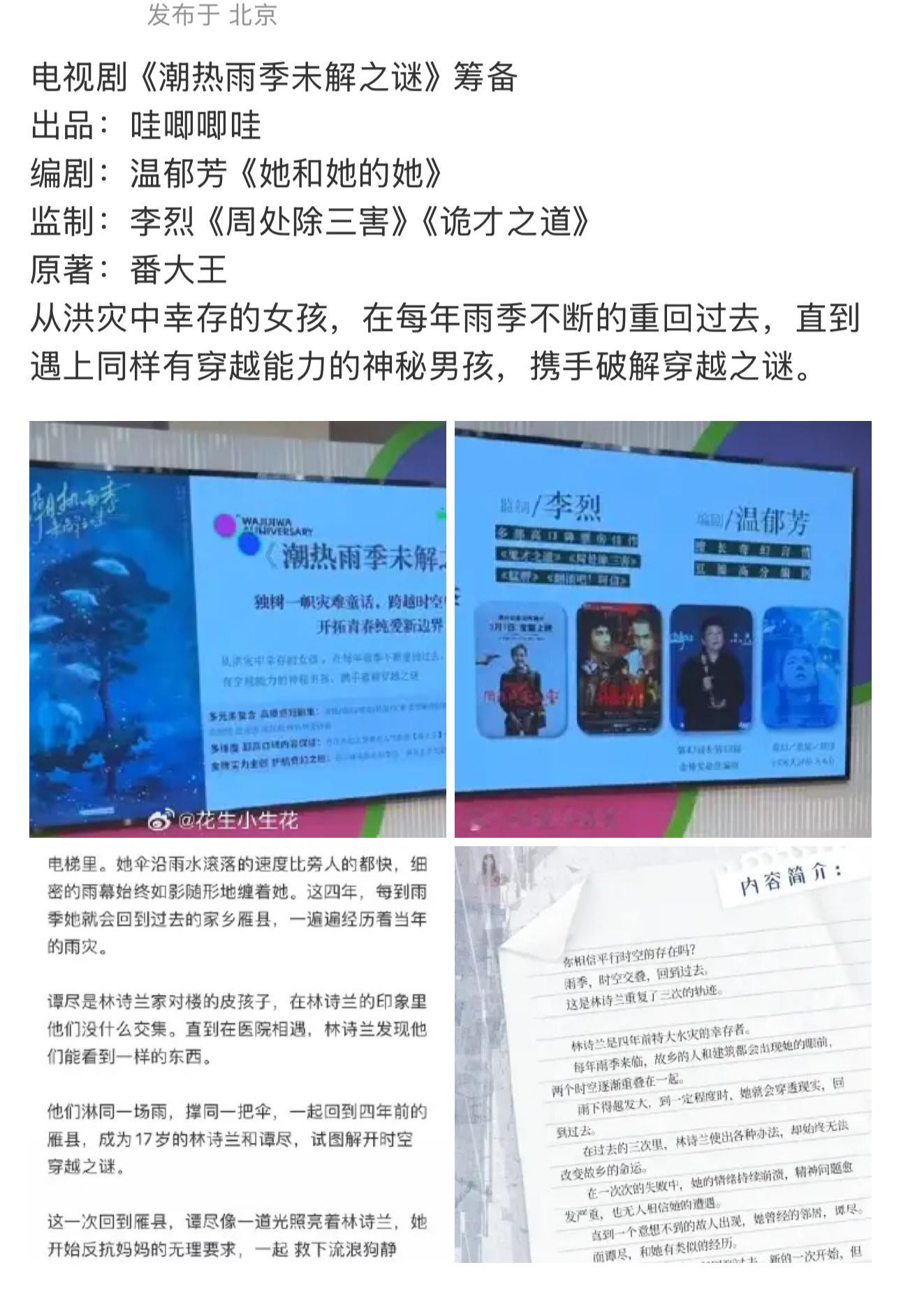 现在又传《潮热雨季未解之谜》 搭周柯宇。 穿越时空暗恋文?