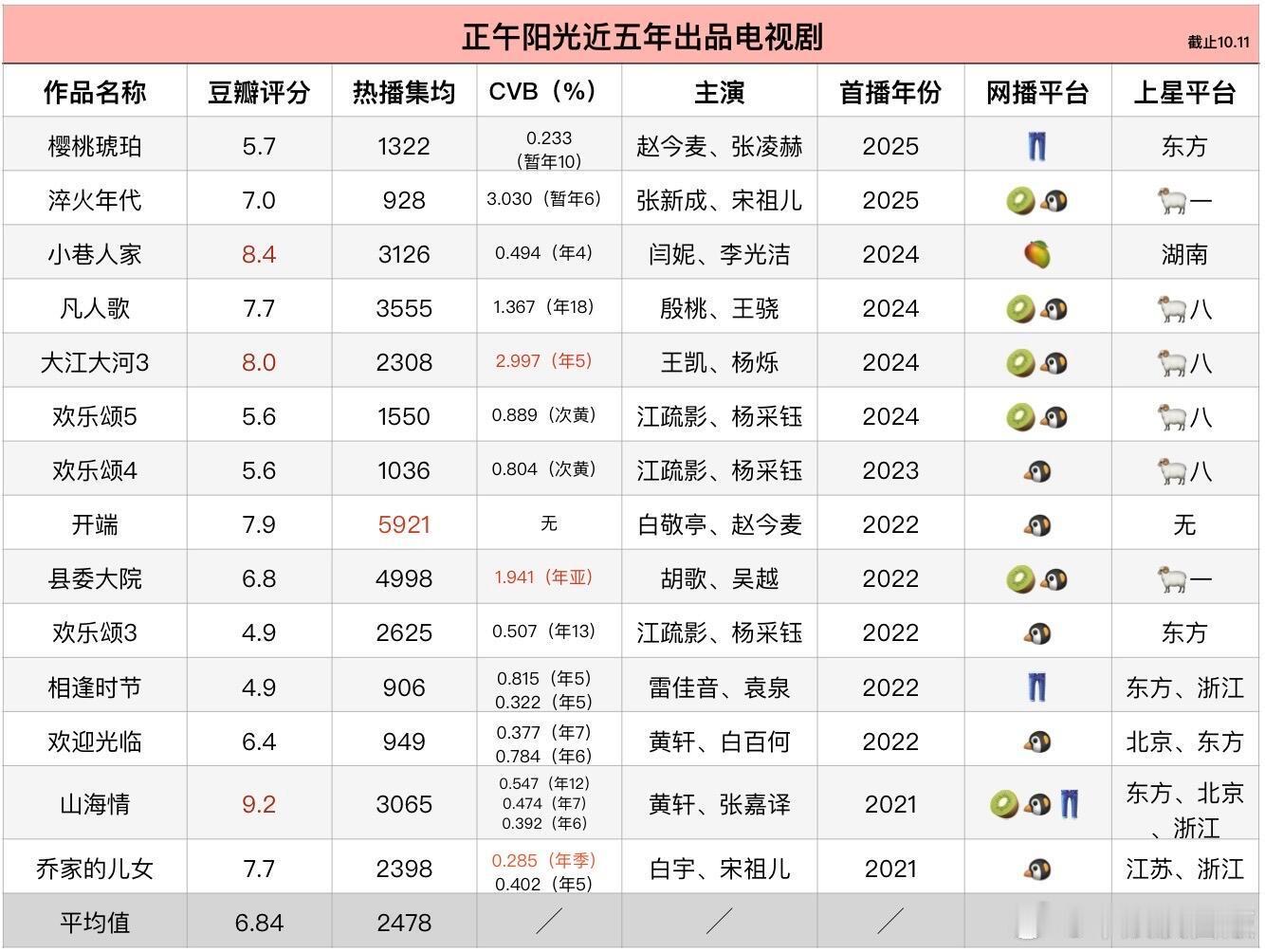 内娱影视大厂近五年最全作品及实绩汇总