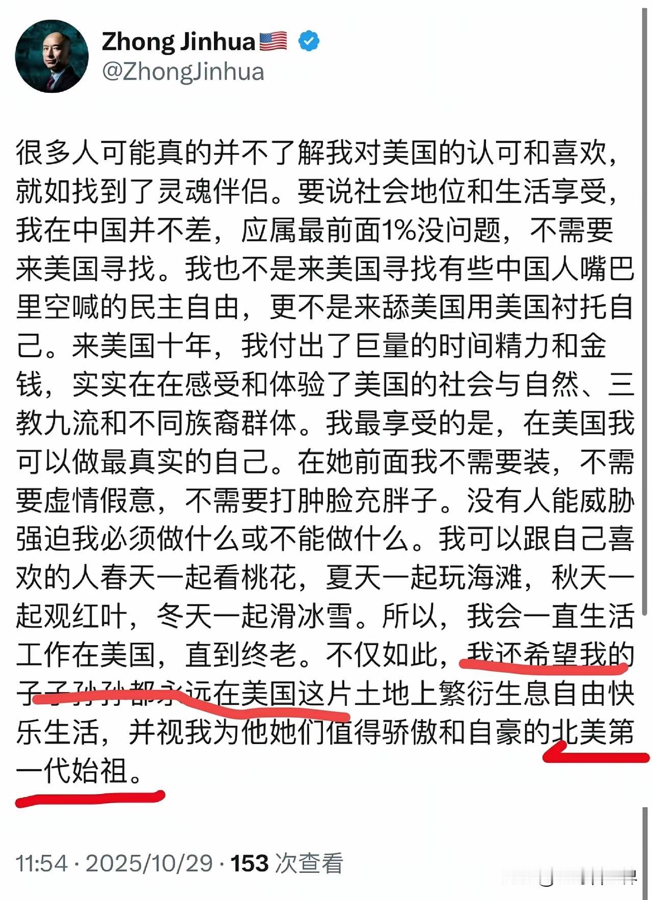 什么叫思想殖民,这就是。 什么叫精神殖民,这就是。 钟金华(音),据说带了二百多万人民币去美国,几年就花光了,十年后才舍得吃一块牛排,“狠狠心”…… 在美国遭遇如此毒打,但他居然如此无怨无悔,跟徐思远、甜甜圈,如出一辙。 但他还想子子孙孙生活在美国?他能吗?
