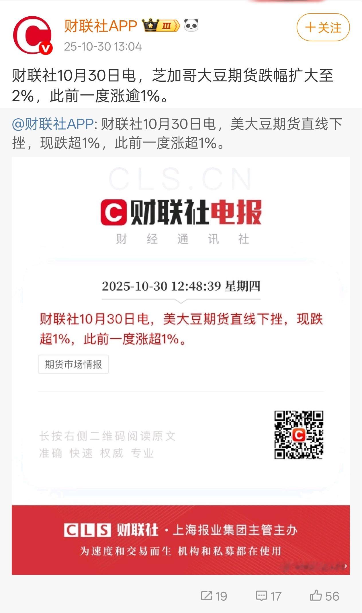 美国大豆期货直线下跌,跌幅超过2% [并不简单]
