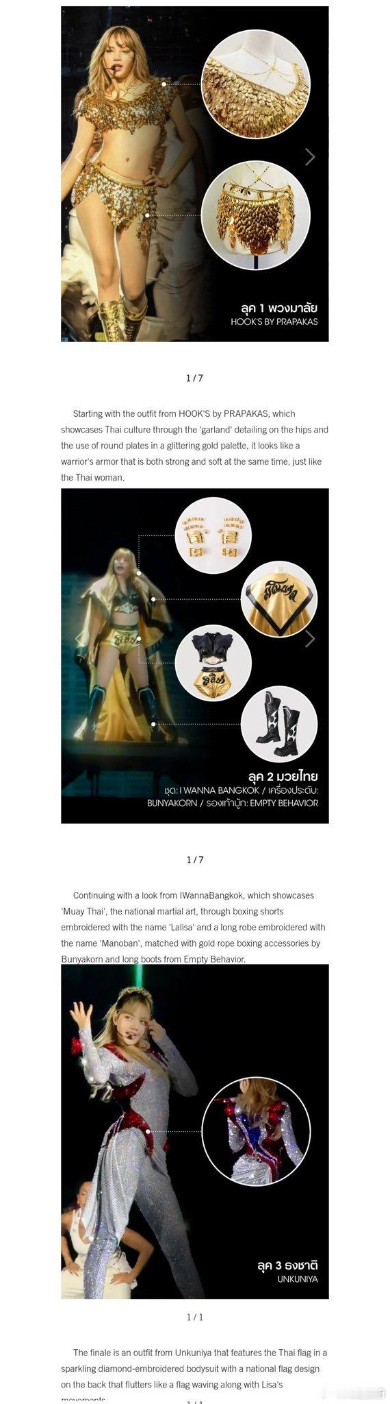 “Lisa在巡演个人舞台上,连续三天全程身着泰国设计师打造的服装,借舞台传递泰国软实力。这不仅饱含对祖国的热爱与自豪,更蕴含深刻文化寓意,向全球展现了泰国设计师的独特创意与时尚潜力。”