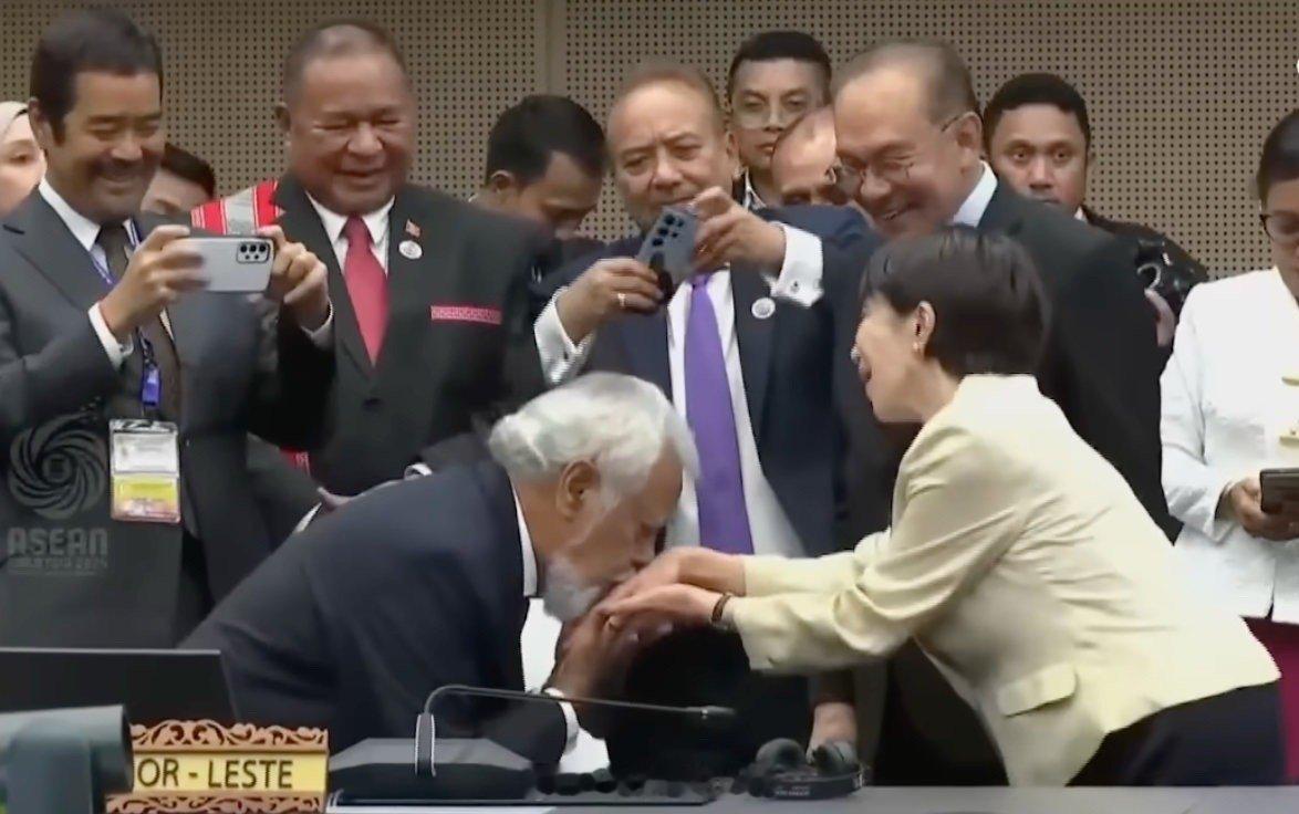 不是开玩笑,真的很像是一场婚礼。注意看高市早苗的眼神,高市早苗的动作,以及她