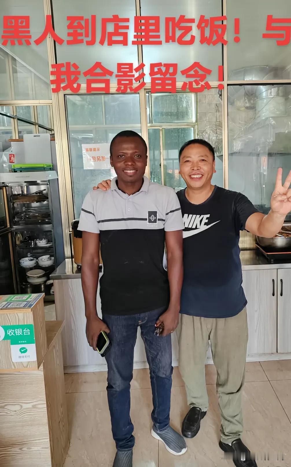黑人到店里吃饭,老板又是免单又是送饮料,高兴得合不拢嘴,还一起合影,直言中非一家亲[比心]