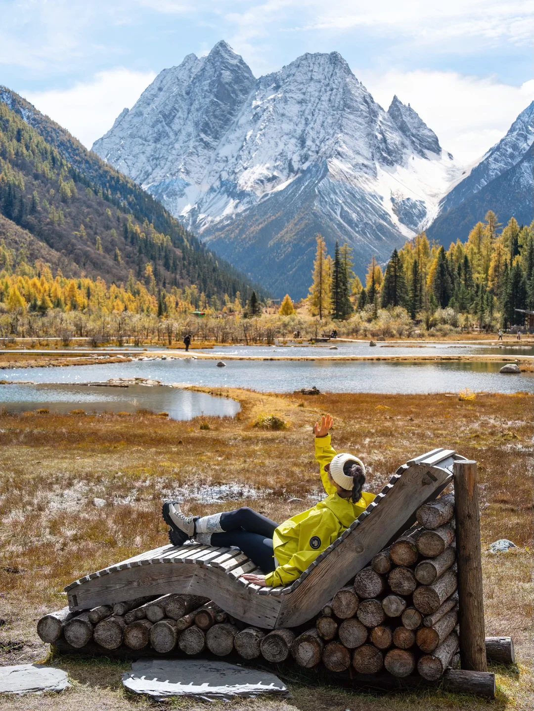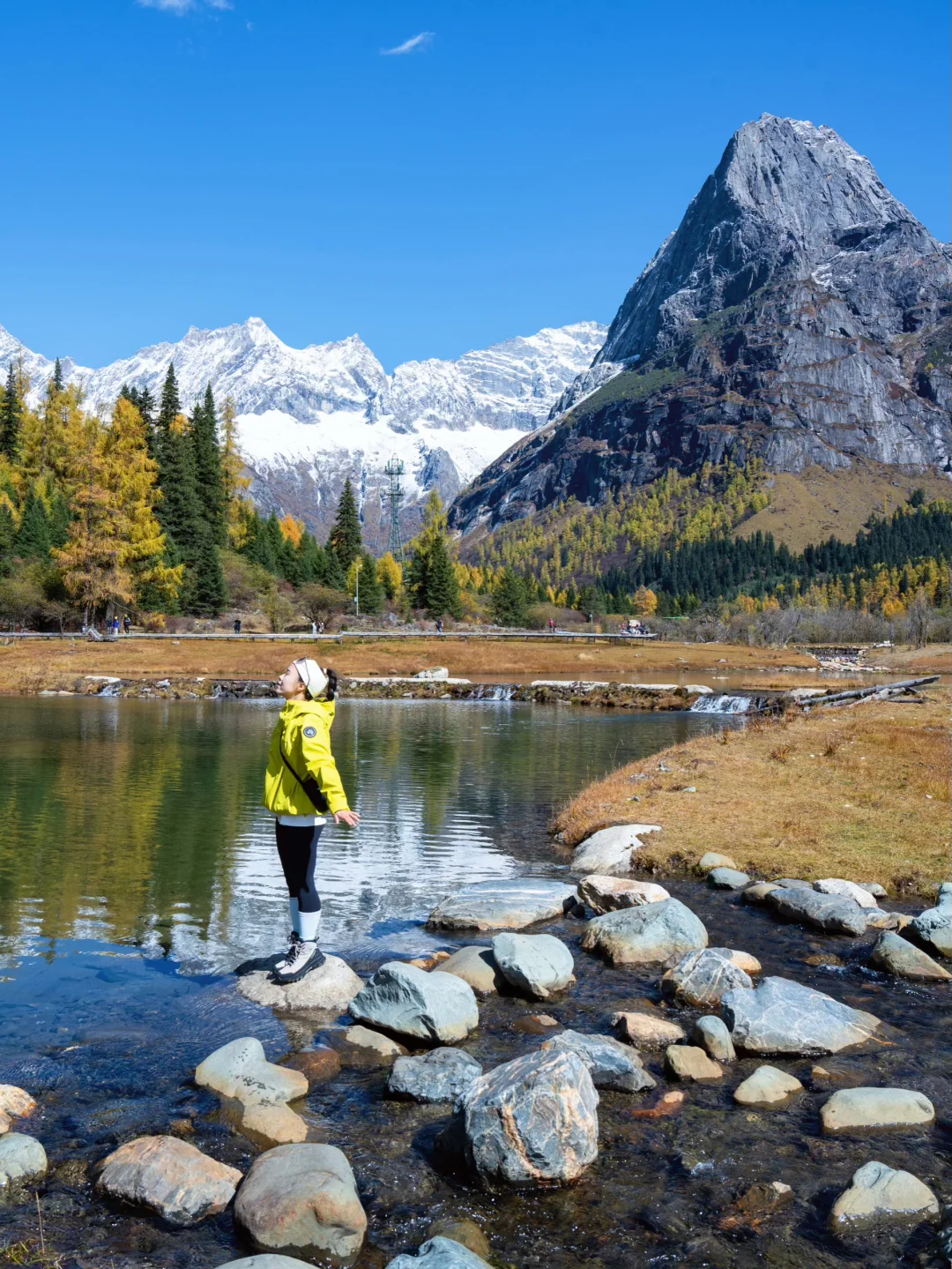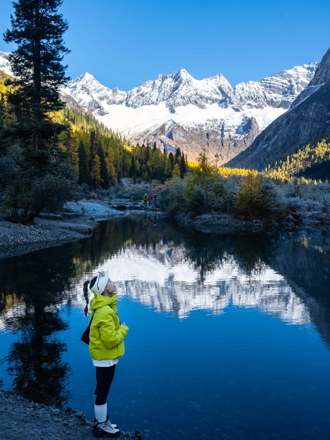 四姑娘山秋冬出游川西川西旅游小众旅行地秋冬穿搭羽绒服探路者探路者冰川冲锋衣冲锋衣推荐冲锋衣穿搭成都周边游旅途中的美景治愈系风景雪山下的秋天