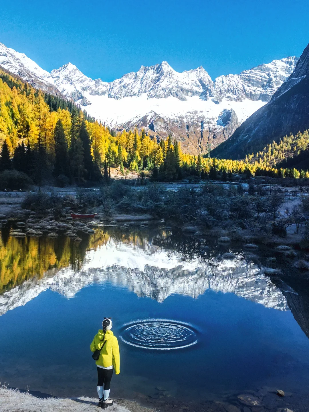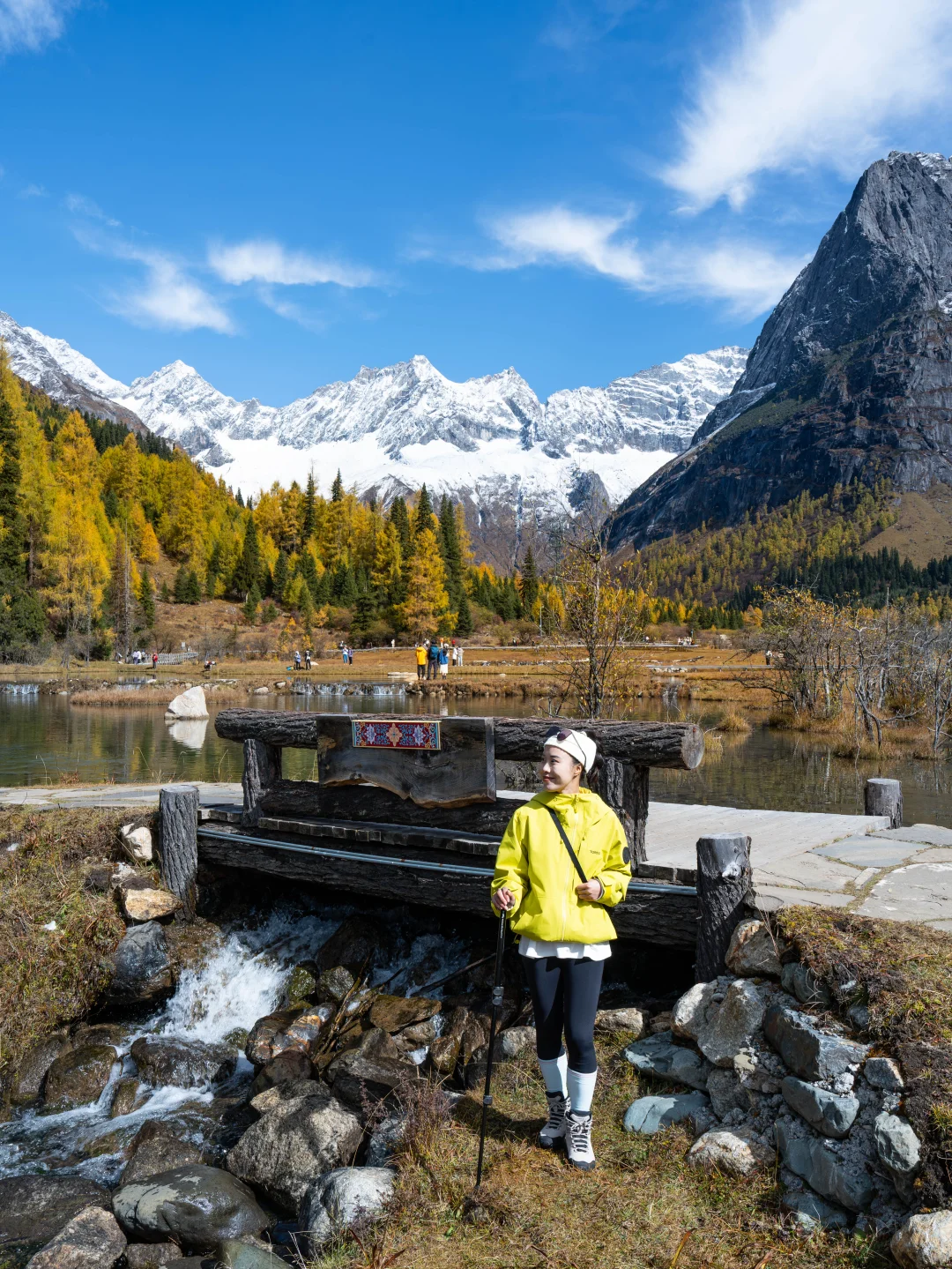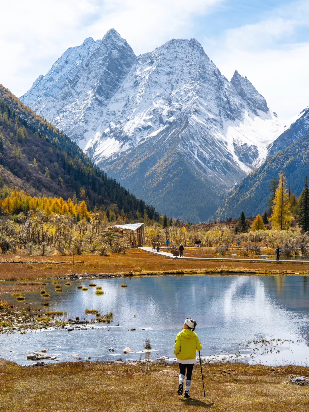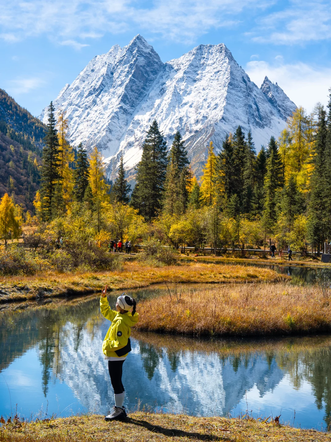 四姑娘山秋冬出游川西川西旅游小众旅行地秋冬穿搭羽绒服探路者探路者冰川冲锋衣冲锋衣推荐冲锋衣穿搭成都周边游旅途中的美景治愈系风景雪山下的秋天