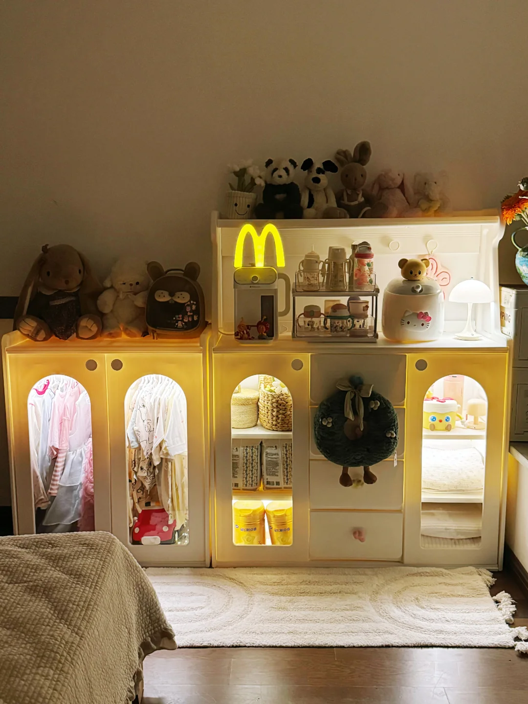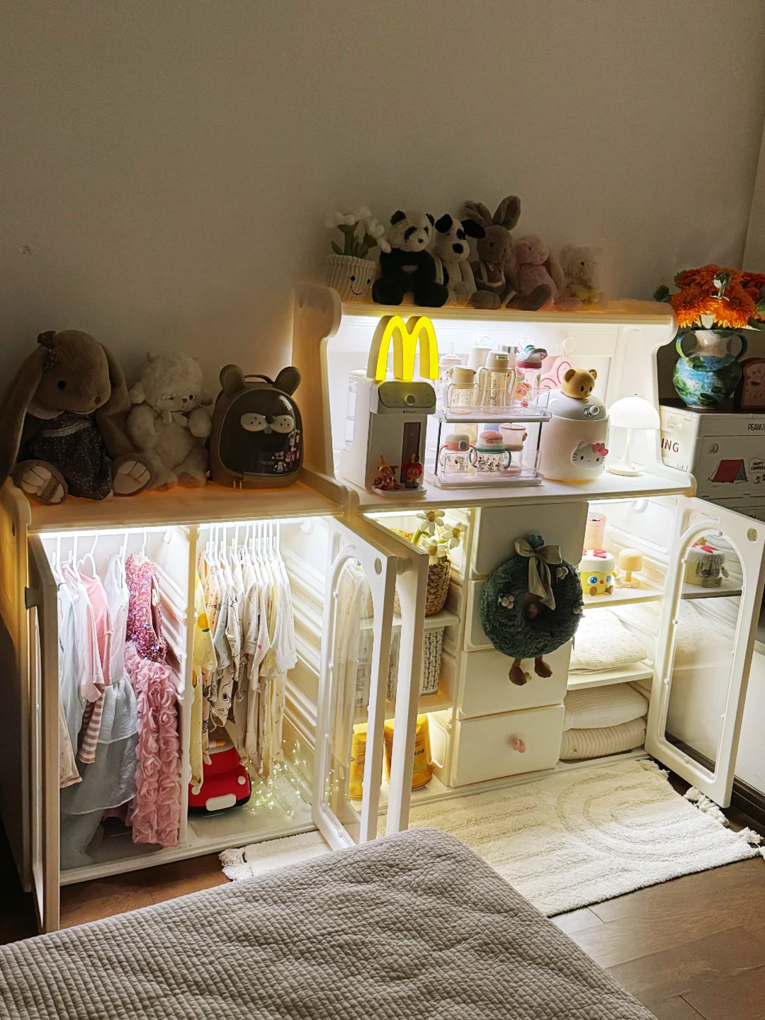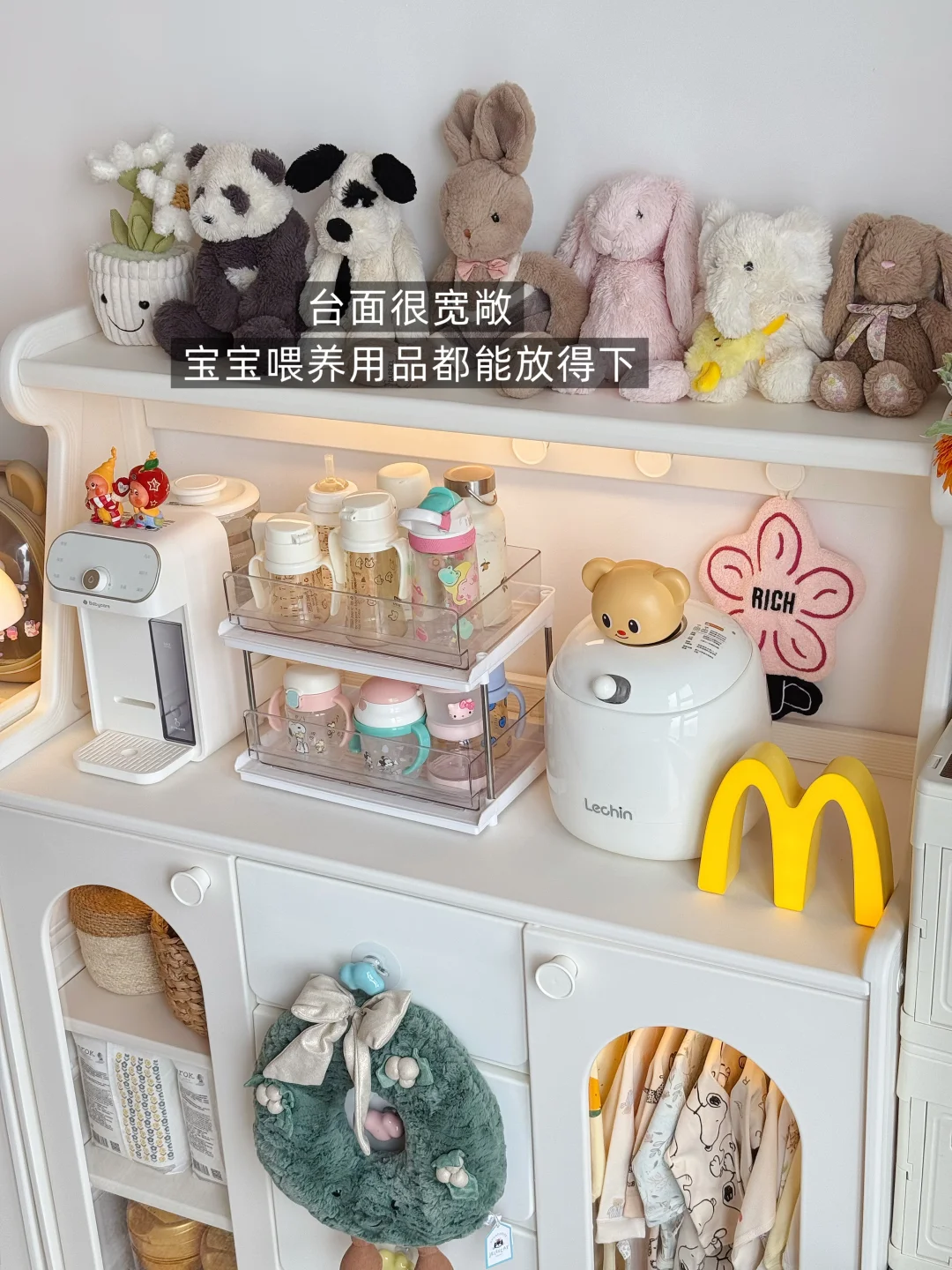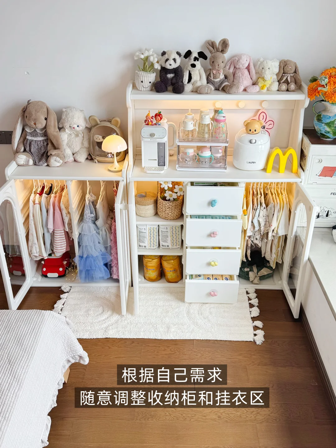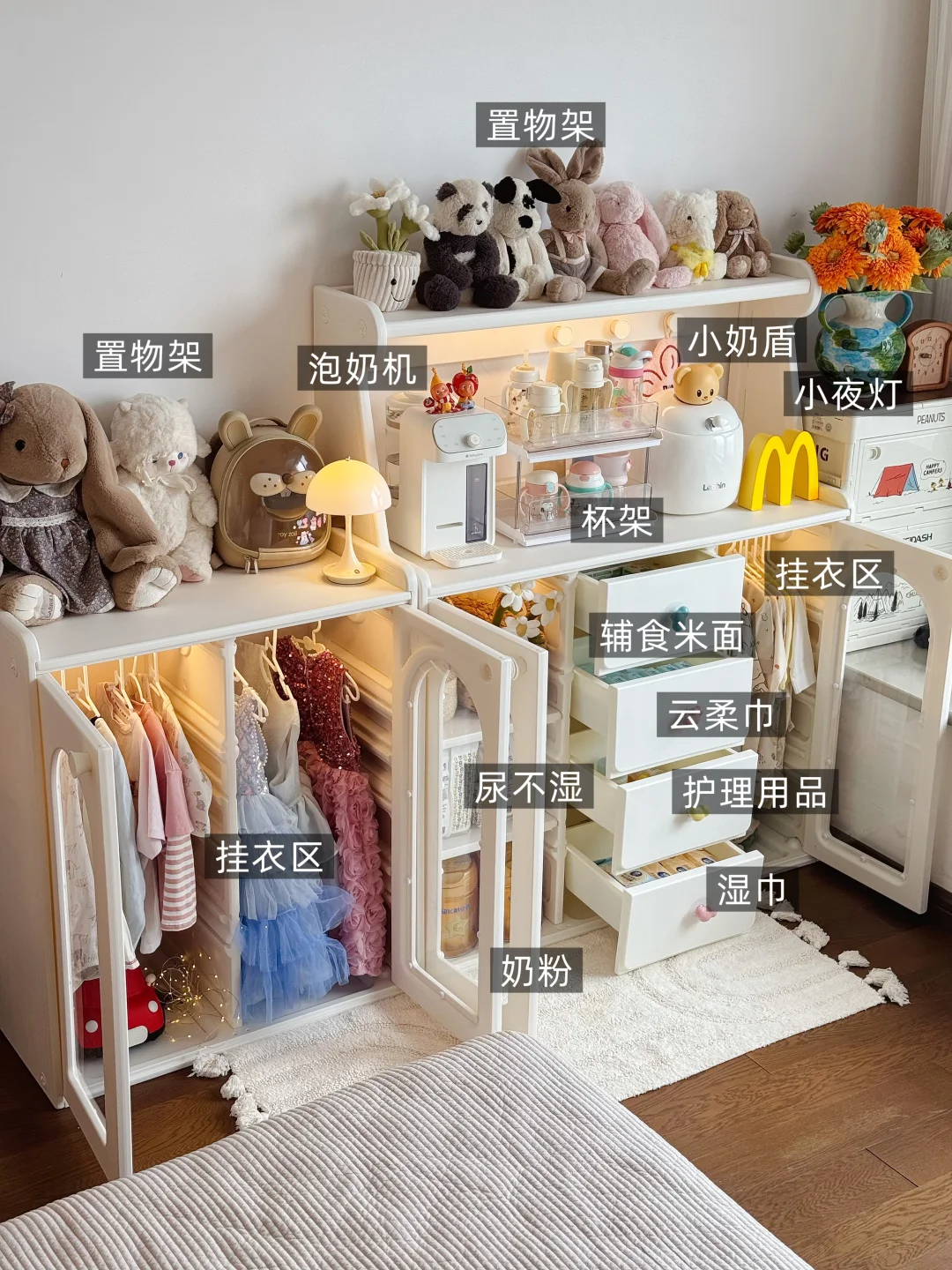 小户型放完婴儿床没地儿? 👇哈比树喂养台太绝! “喂养+衣柜+尿布台”三合一 1个平方就装下,省空间到尖叫🙀 - 上层大台面超能装:泡奶机、消毒柜、奶粉罐都能放,冲奶换尿布伸手就够;下层塞尿不湿、棉柔巾、玩具,囤货整齐,一站式喂养超省心!👏 - [害羞R]层板能一键拆,想挂衣就当挂衣区 想收纳就装回,超灵活![派对R] 还有防滑卡扣不晃掉,抽屉丝滑 全封闭背板防潮防尘,实用拉满! - 摆点装饰氛围感就来, 颜值实力都在线~小户型养娃姐妹,闭眼冲![买爆R]