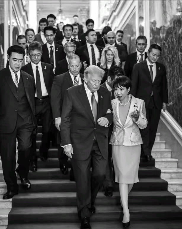 俺刚瞅见这张火遍全网的照片儿,好家伙!高市早苗下台阶时那个自然哟,一把就挽住了特朗普的胳膊肘子,不知道的还当是两口子遛弯儿呢!这亲热劲儿怕是梅拉尼娅瞧了都得拧眉毛——白宫特意挑这张贴出来,那是相当会抓镜头啊。 要说日本政客这套功夫,真真是青出于蓝而胜于蓝。当年安倍晋三见特朗普也就是鞠个躬堆个笑,如今高市早苗直接挽胳膊上手段,64岁老太太这姿态摆得,比安倍当年还豁得出去!安倍泉下有知,只怕要拍膝盖叹一声“这姑娘能挑大梁”。 可日本老百姓脸上挂不挂得住?反正俺是替他们臊得慌。日美这哪是手挽手走下台阶,分明是相互挽着走下坡路!特朗普眼里这老太太当然讨喜——毕竟这套动作换别人也做不出来,隔着太平洋都能闻到迎合的味儿。