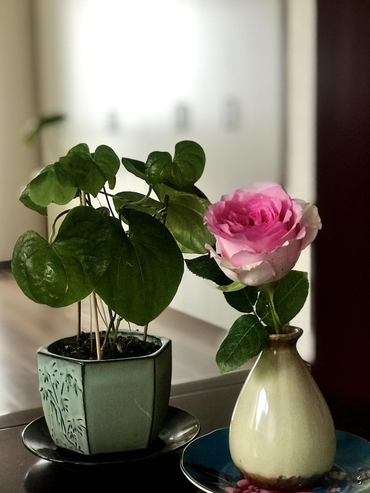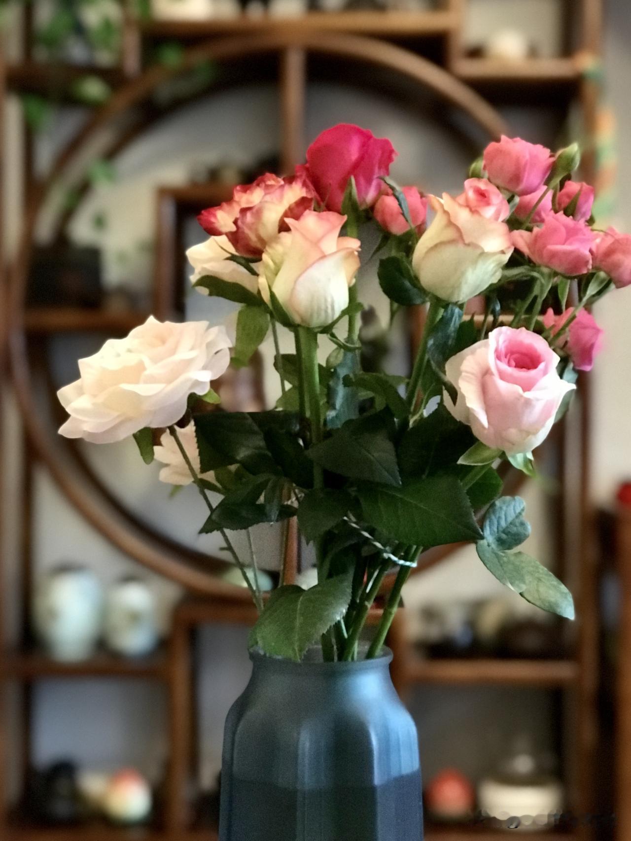 晚饭后和先生出去散步,看到路边有卖花的,品种大多数是花中皇后——月季。 有粉色的龙沙宝石: 粉色与乳白温柔交响,花心层层叠叠如古典玫瑰,外层花瓣则渐染淡粉。 典雅而浪漫,像晨光中凝结的梦。 有热烈奔放的红双喜: 初开时乳黄,随着绽放,边缘翻涌出鲜艳的樱桃红,拥有浓郁醉人的甜香,一花双色,惊艳夺目。 它像一位大胆的画家,将夕阳的炽热与奶油的醇厚调和在一起,每一次绽放,都是一次生命的狂欢。 有缱绻温柔的云端之梦: 拥有饱满的藕荷色杯状花型,无数花瓣如波浪般翻卷,香气馥郁,花量巨大,花开时如一片浪漫的紫色云雾。 它的花朵是沉静的、丰腴的,像一团团萦绕在篱笆上的紫雾,散发着古典的芬芳,温柔而坚韧。 有优雅永恒的奥斯汀之冠朱丽叶: 杏色与粉色的柔和渐变,优雅的杯状盘形,开花整齐,气质高贵。 它是一位从古典油画中走出的淑女,每一片花瓣的弧度都经过精确计算,散发着理性与感性完美结合的光芒。 我平时喜欢插花,大部分从自家花园采撷。 但一场秋雨一场寒,花园里的花渐渐凋零,只有零星几朵,于是不忍心再剪了。 据说街边这些月季花,是从云南昆明空运而来,难怪花色品种这么丰富。 我随口说了一句:这些话好漂亮啊。 先生说你喜欢就买一束吧。 于是买了一把回来,把它稍加修剪,插了两个花瓶。 其中一朵花的花杆,不小心从中间折断了,就单独挑出来,插了一个小花瓶,也很好看。 小小一束花,能够带给我一整天的快乐,美好就在这些不经意间流淌着。 愿这些月季的芳容与诗韵,能为我们的生活添上一抹不谢的春色。 毕竟, 一季花开,是一场热闹; 四季花开,便成了一种生活。 欢迎关注@丁丁的慢时光 月季花一角 月季花