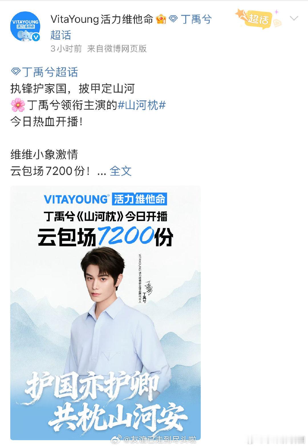 丁禹兮的山河枕 今日开播,代言的品牌纷纷开始云包场,其中有品牌维他命。