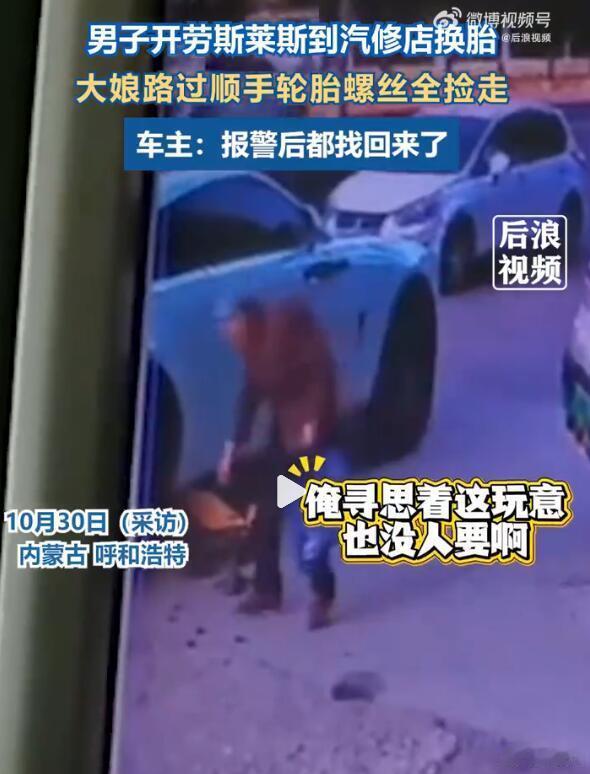 劳斯莱斯换胎大娘将螺丝当废品顺走