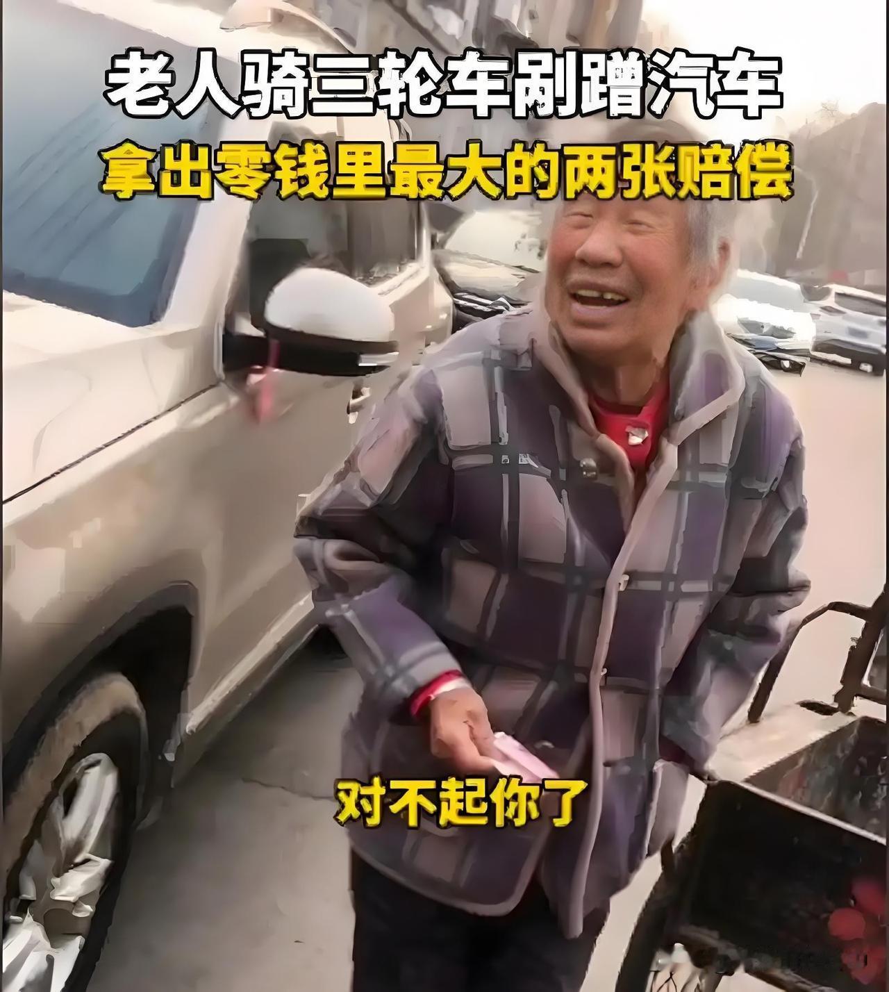 一个普通老人的善良,让我重新相信这个社会的温暖 那天,在街上开车的我突然听到“哐当”一声,回头一看,竟是一辆破旧的三轮车撞上了我的车。车身上明显有一块漆被剐掉了,心里不免有些心疼。 转身一看,骑车的是一位白发苍苍的老人,满脸皱纹,衣着朴素,显然生活不易。 老人连忙道歉,嘴里不停地说:“对不起,对不起,我不是故意的。”她从口袋里掏出两张皱巴巴的百元钞票,犹豫着问我:“这些够吗?” 我一时愣住了,心里想着,这点钱根本不足以修补那块漆,也许还会让老人更为难。 我试探着问:“你家里有人吗?需要帮忙吗?”老人眼圈一红,哽咽着说:“我家里有人住院了,没收入,日子过得紧……” 那一瞬间,我心里一震,原本以为这只是一场简单的交通小事故,却让我看到了一份难得的坚守。 我拒绝了她的赔偿,告诉她不用担心,事情就这样算了。 她却执意把钱塞到我手里,眼里满是感激和无助:“这点钱是我全部的积蓄,您收下吧。” 我看着她那满脸的皱纹和坚韧,心里不由得泛起一股暖流。 这件事在网上引发了热议。有网友说:“我觉得,真正值得我们尊重的,是像这位老人一样,有责任心、敢于担当的人。” 也有人说:“老人虽然贫困,但心存善良,值得我们每个人学习。” 还有不少人感慨:在这个社会,最难得的不是金钱,而是那份坚守的诚信和责任。 其实,生活中我们常常会遇到类似的场景。有人会觉得,老人这样的行为只是“应当的”,但我想说,这样的善良和勇气,正是这个社会最需要的正能量。 我们不应该只在新闻里看到感动的故事,更应该在日常生活中去理解、去传递。 当我们遇到困难的人,不妨多一点理解和宽容。因为,一颗善良的心,比任何物质都更珍贵。 只有我们都愿意用善意去对待他人,这个社会才会变得更加温暖。 最后,希望每个人都能像那位老人一样,坚守自己的底线,心怀善意。也希望我们每个人都能成为那个传递温暖的人,让善良成为这个世界最美的风景。平凡的人的善良 温情感动故事