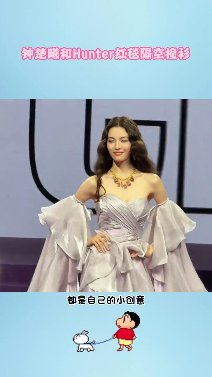 钟楚曦和Hunter红毯隔空撞衫。 还以为钟楚曦的审美很在线,之前一直说自己的红毯装造都是自己的小创意,而这次Hunter红毯的装造被扒出和外国明星Hunter Schafer的一模一样,连耳环这样的小配饰也一样,完全是抄袭。这次可千万别说是自己设计的了,这简直是1:1复刻了。