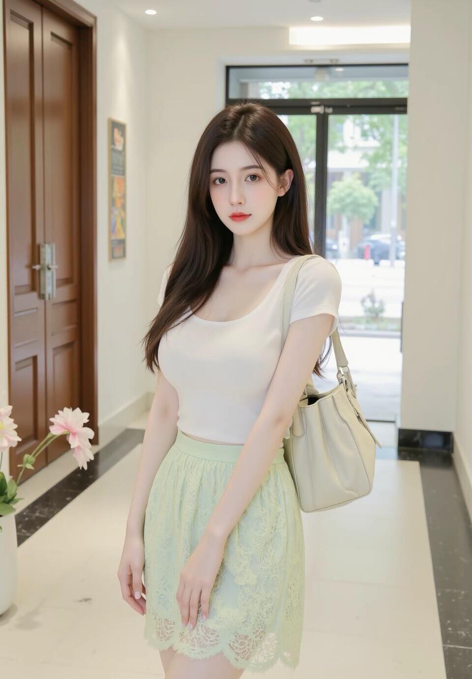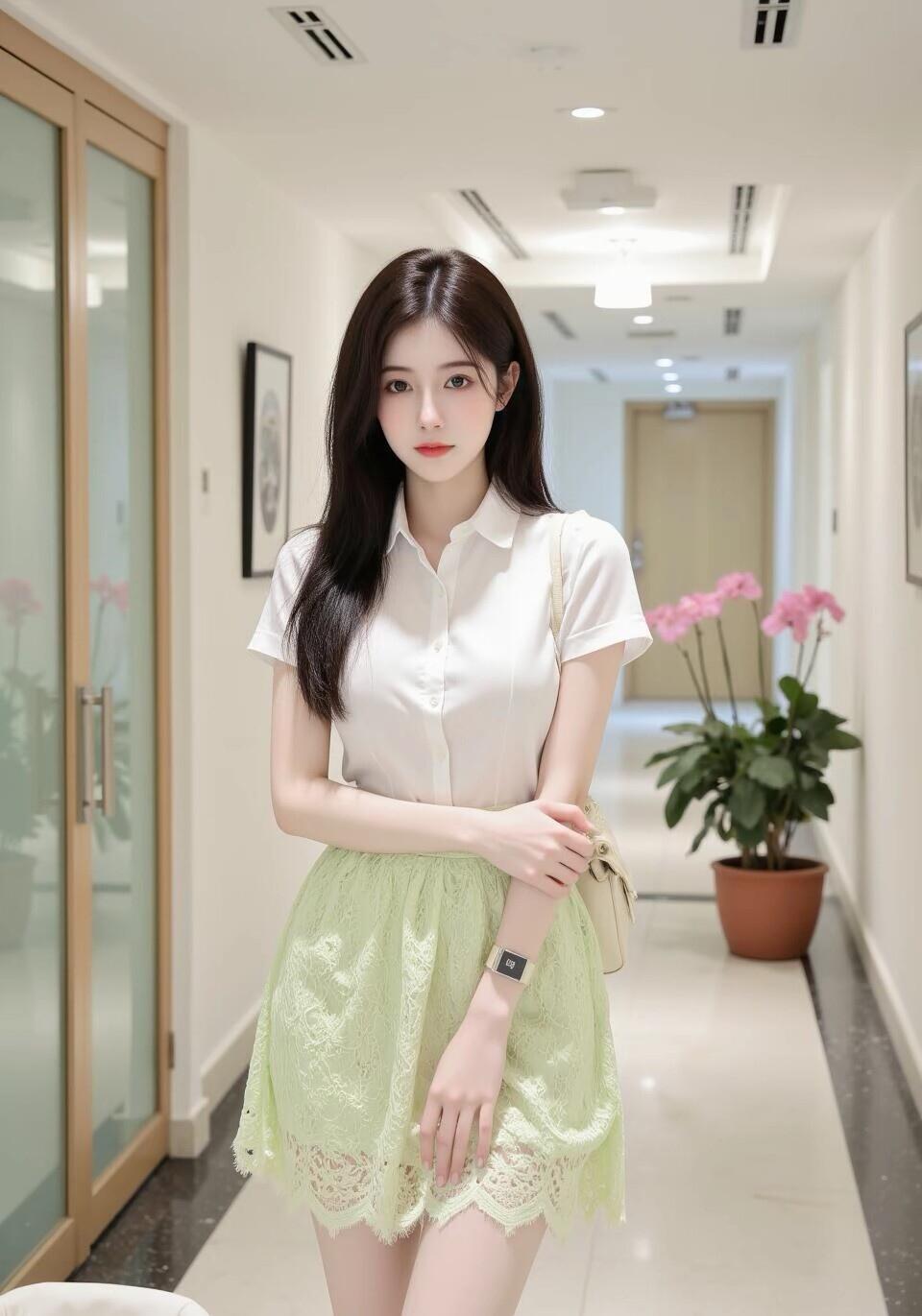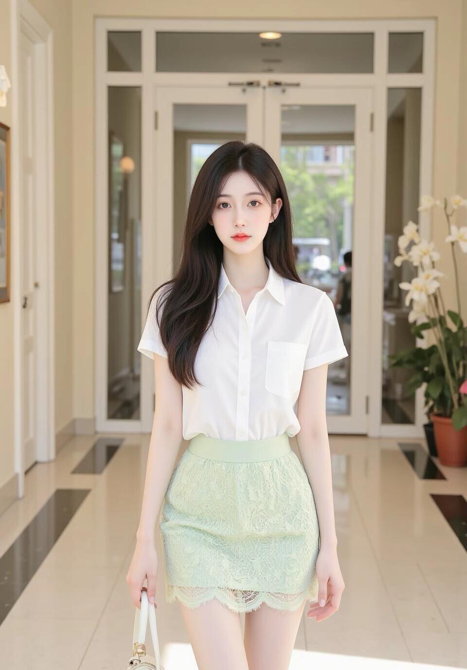 清新夏日穿搭,浅绿色蕾丝短裙搭配白色短袖,元气满满!🌞👗👗