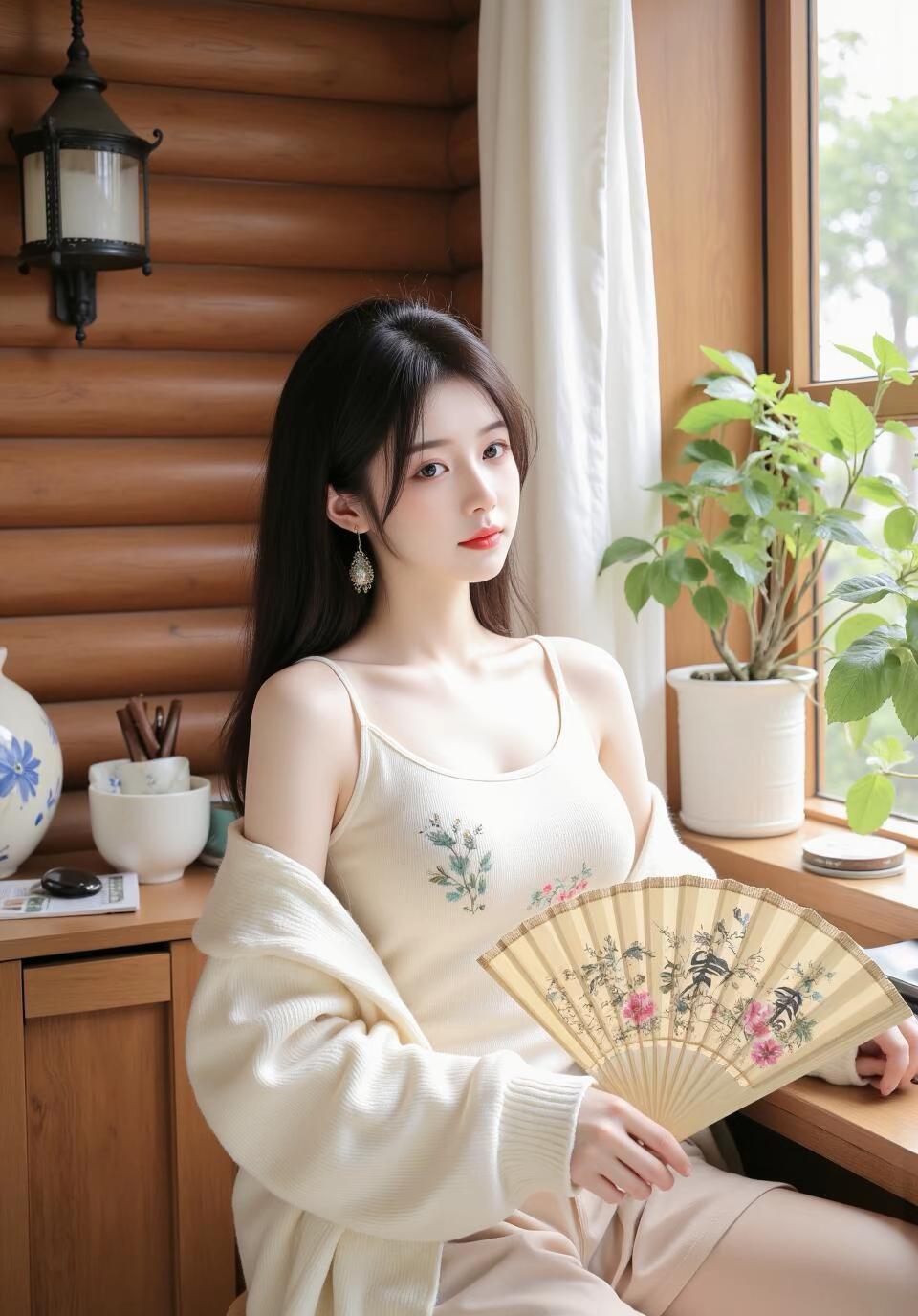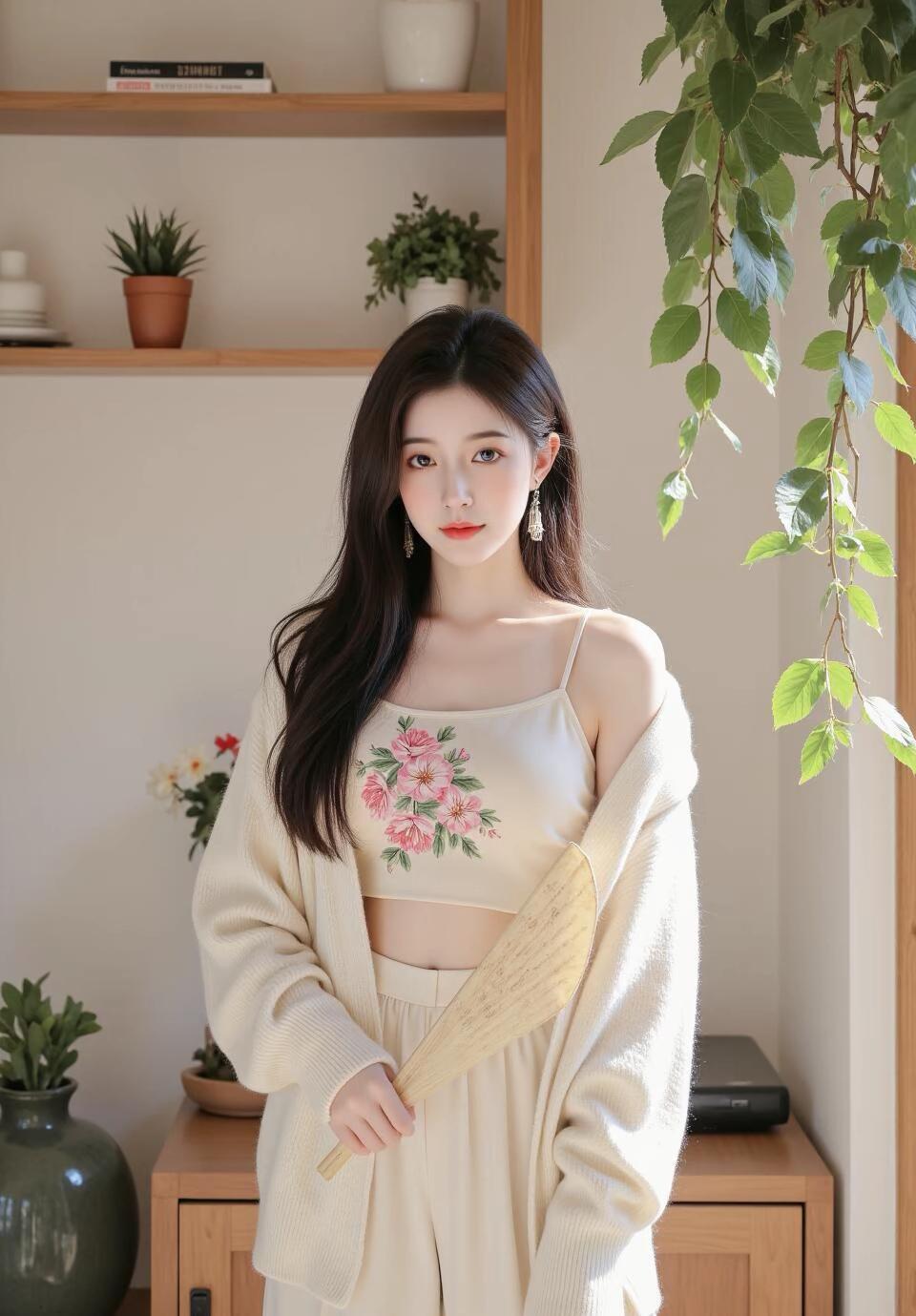 温柔少女心,粉色花朵连衣裙,木质背景,清新自然。