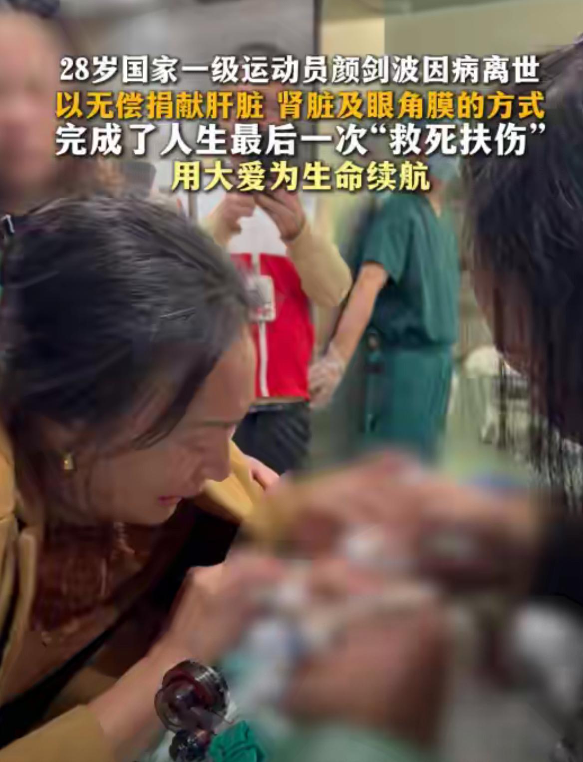 你知道吗?一个才28岁的国家一级运动员突然走了,他的父母却做了一个让所有人都没想到的决定,这背后究竟有着怎样的故事 这小伙子叫颜剑波,湖南邵阳人。从小就被送去体校练摔跤,那股不服输的劲儿让他一路练到了国家一级运动员。训练时受的伤可不少,肋骨骨折、肩膀脱臼,他都自己默默扛着,从来不跟家里人吭声,就怕父母担心。 退役后他在长沙自己创业,每次回老家,进门就先给妈妈一个拥抱,还总抢着下厨做饭。身边朋友都爱叫他波哥,因为他特别热心肠,谁需要帮忙他都会搭把手。 可谁能想到,看着这么结实的一个人,竟然会因为突发脑出血说走就走了。家里人才知道,原来他血压一直偏高,只是从来没提过。突如其来的噩耗让全家人都懵了。 就在最难过的时候,颜爸爸突然提出:咱们把孩子的器官捐了吧,这么优秀的孩子,不能就这么走了。刚开始颜妈妈怎么也接受不了,但后来慢慢想通了:要是他的心跳还能继续,眼睛还能看着这个世界,那该多好。 最后,颜剑波捐出了两个肾脏、一个肝脏和一对眼角膜,让五个正在等待的患者重获新生、重见光明。这个28岁的年轻生命,就这样用另一种特别的方式,继续留在了这个世界上。