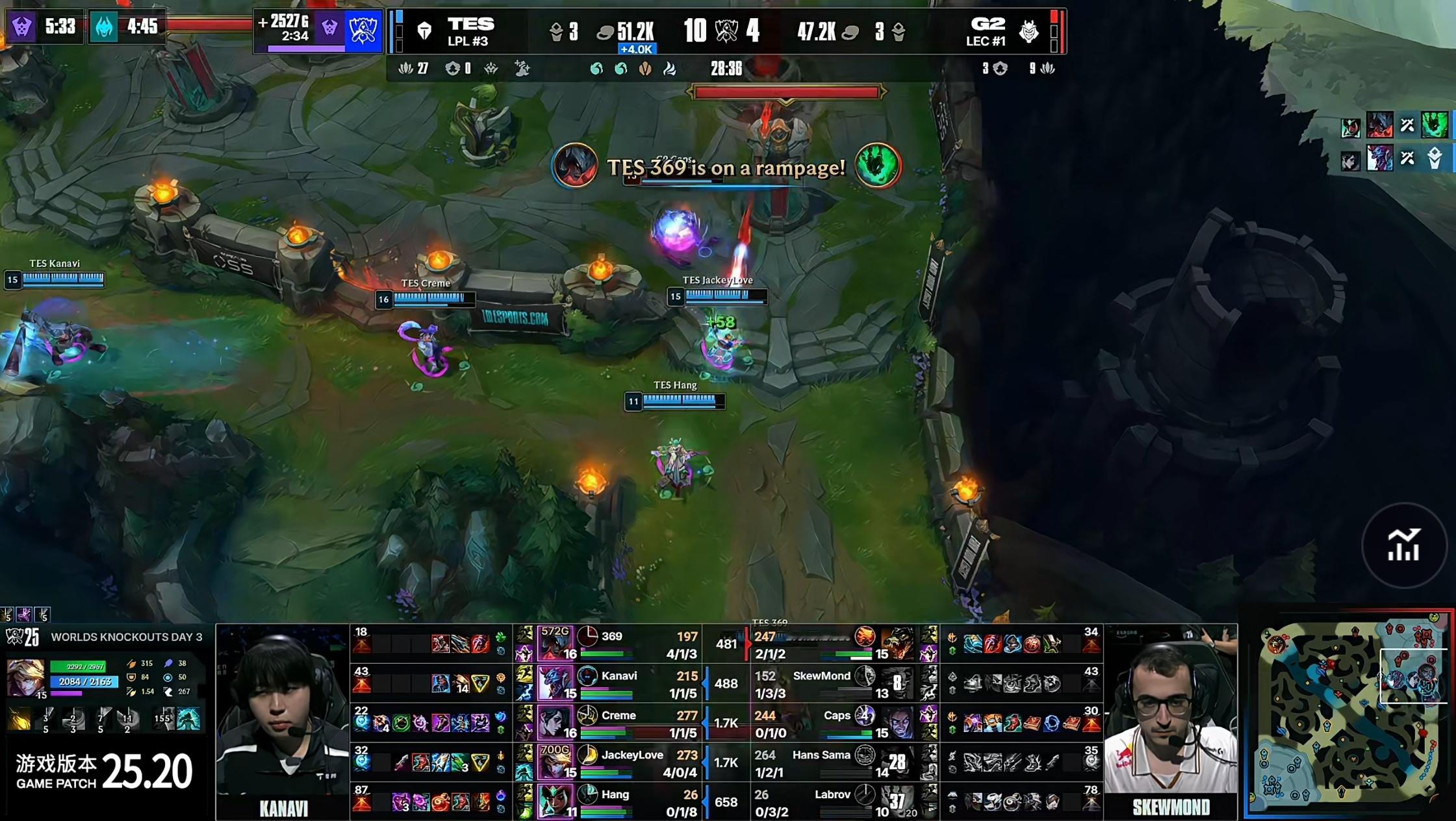TES对战G2 刚才那波反开有点帅的,69 也是操作起来了!