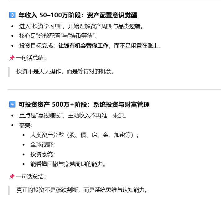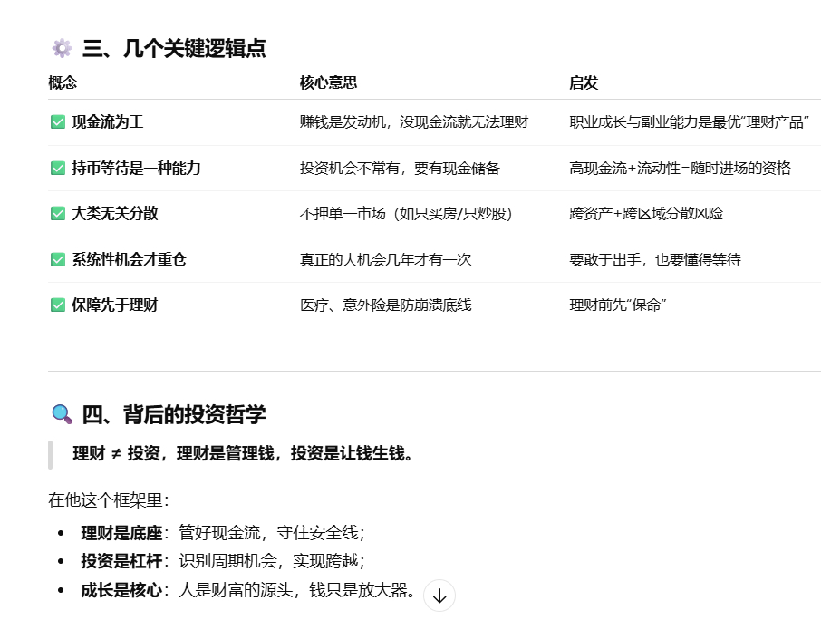 这次旅行回来后,开始密集关注和系统性学习财商,我分别喂给chatgpt总结了一些有启发的观点。