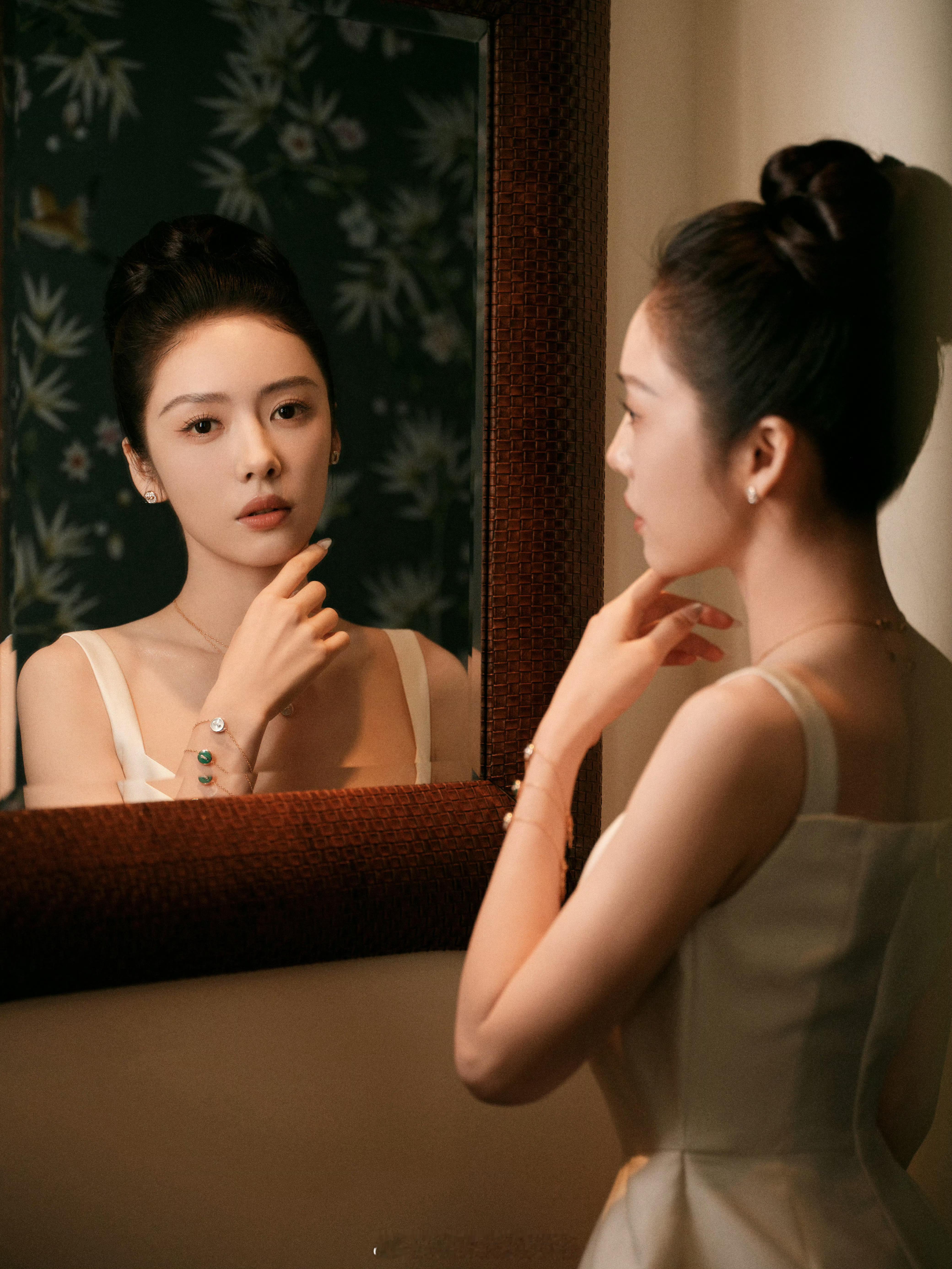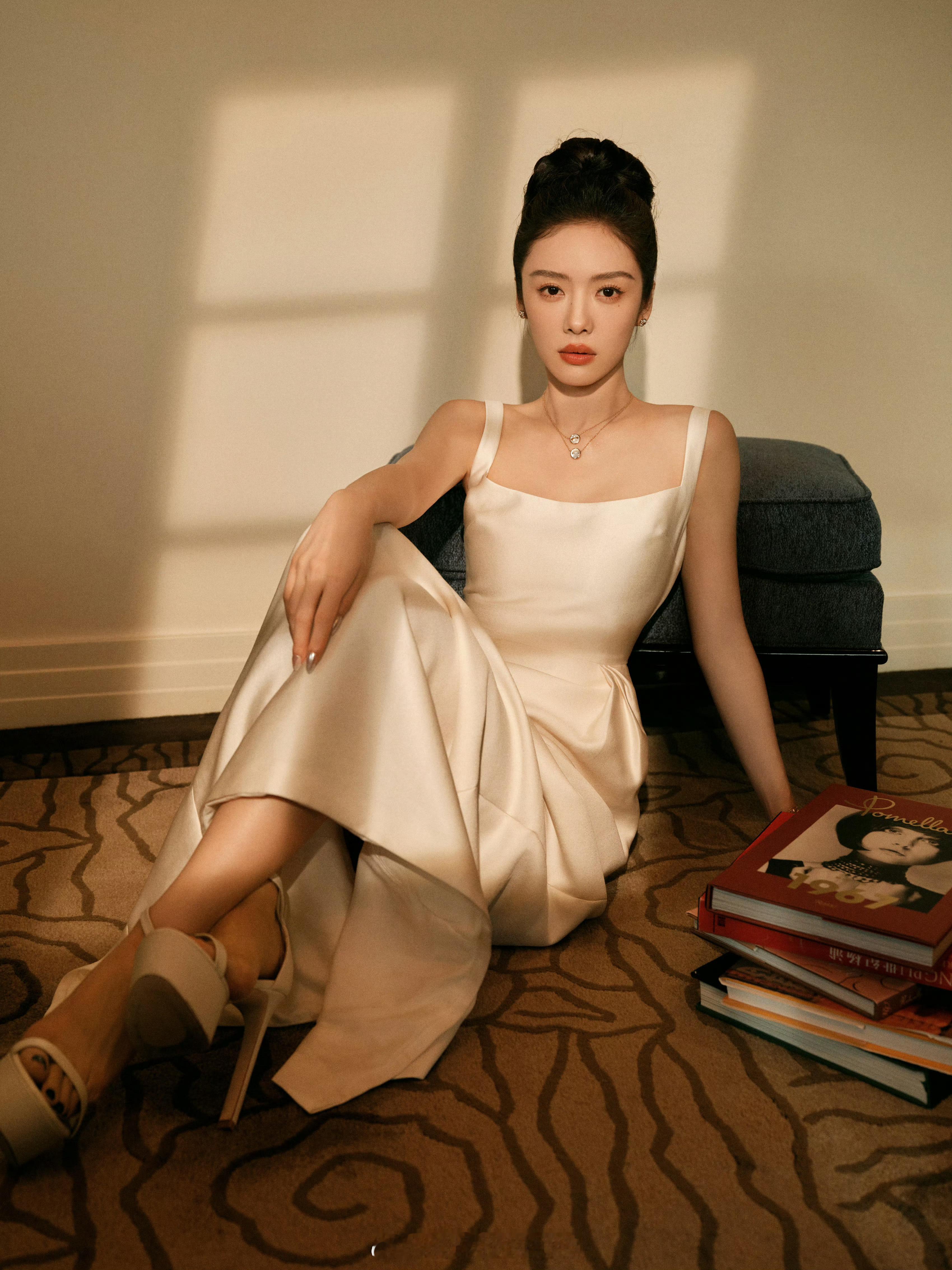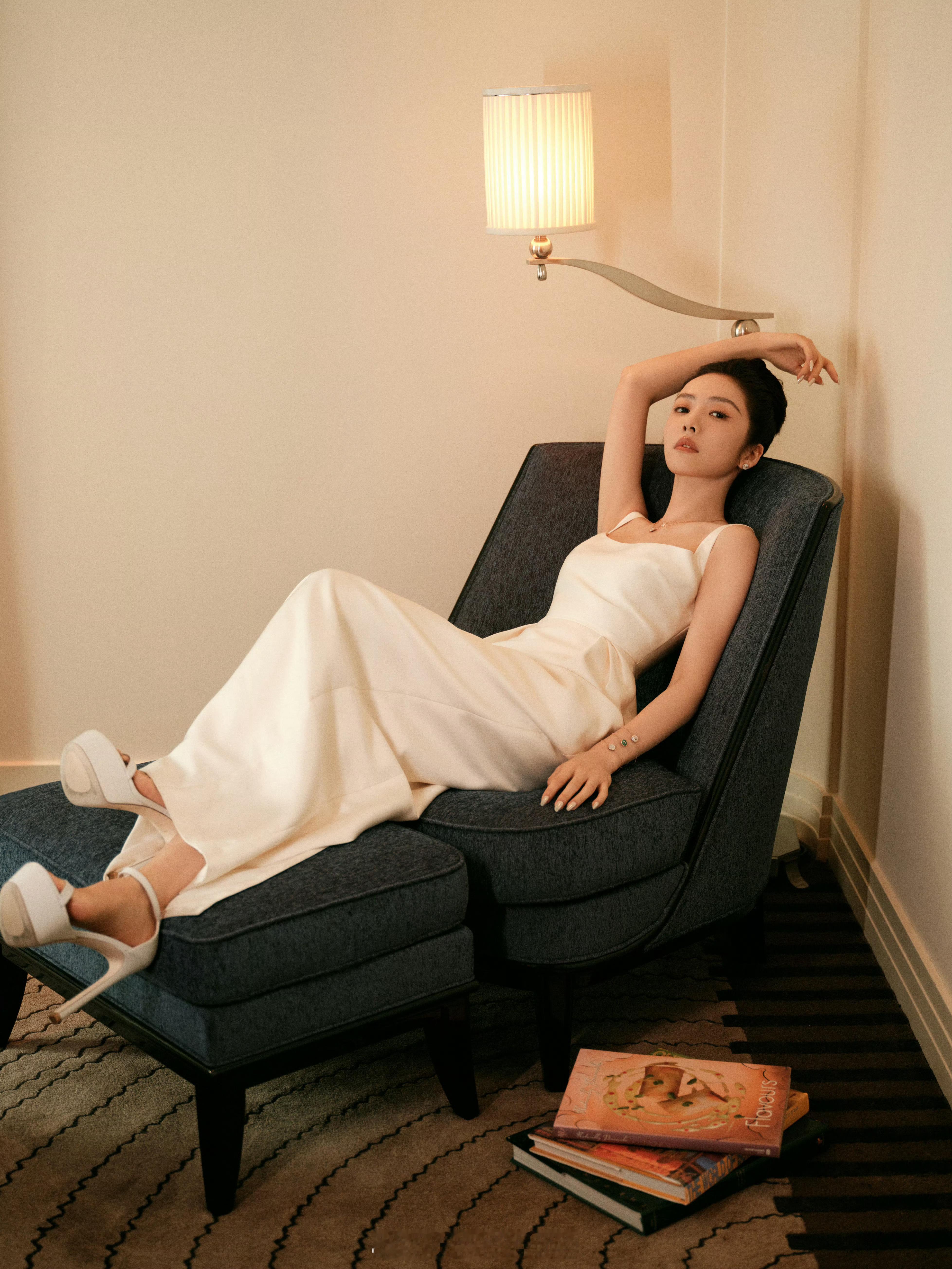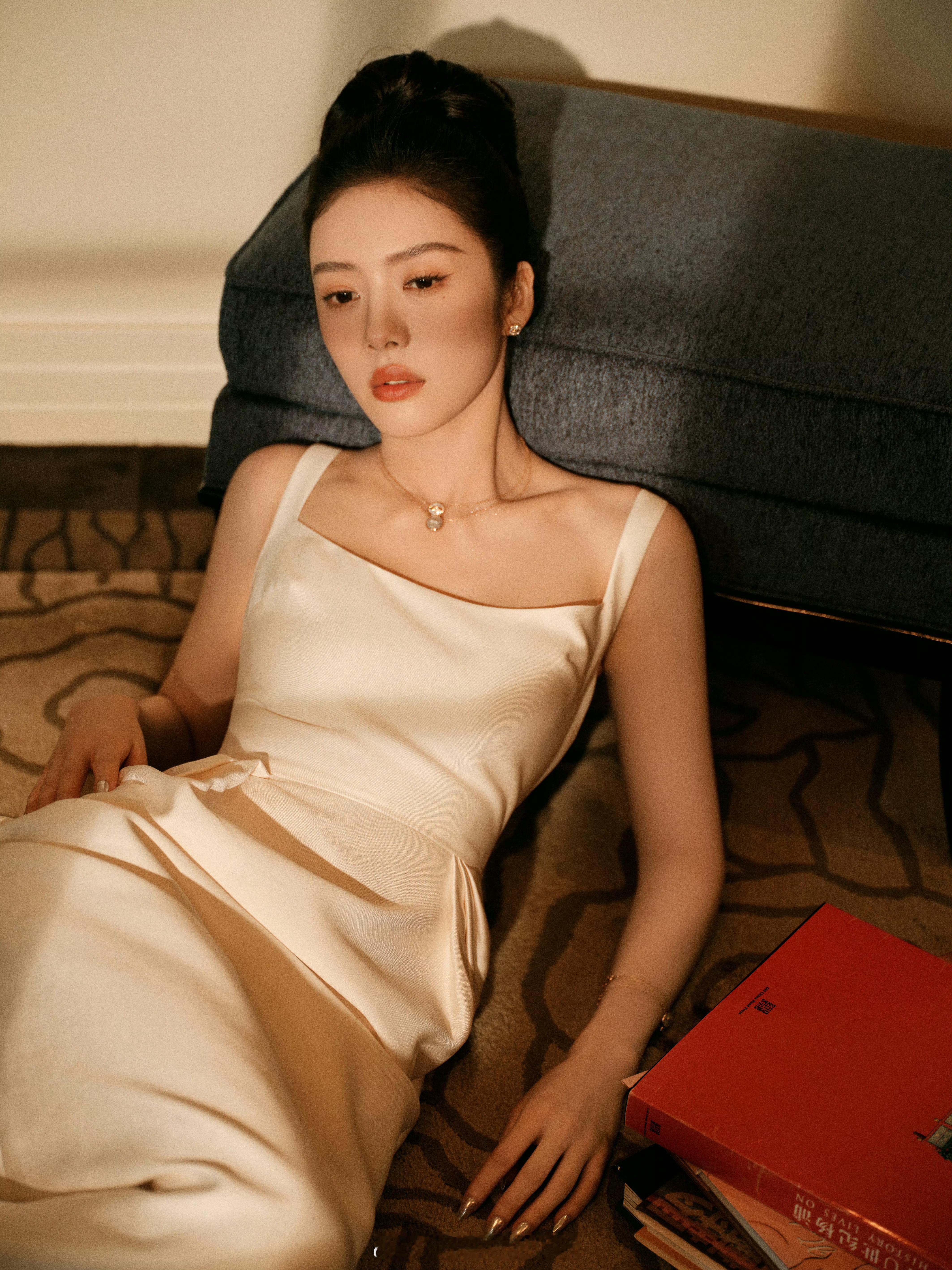 蔡文静真丝白裙美丽迷人