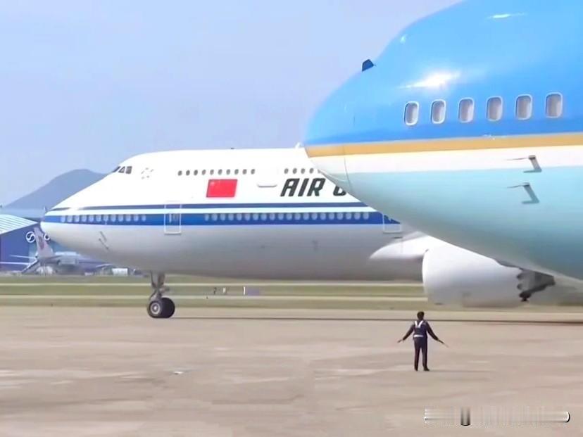 两架梳着"大背头"的747一号专机~颜值在线,罕见同框! 相向而行,互惠互利。