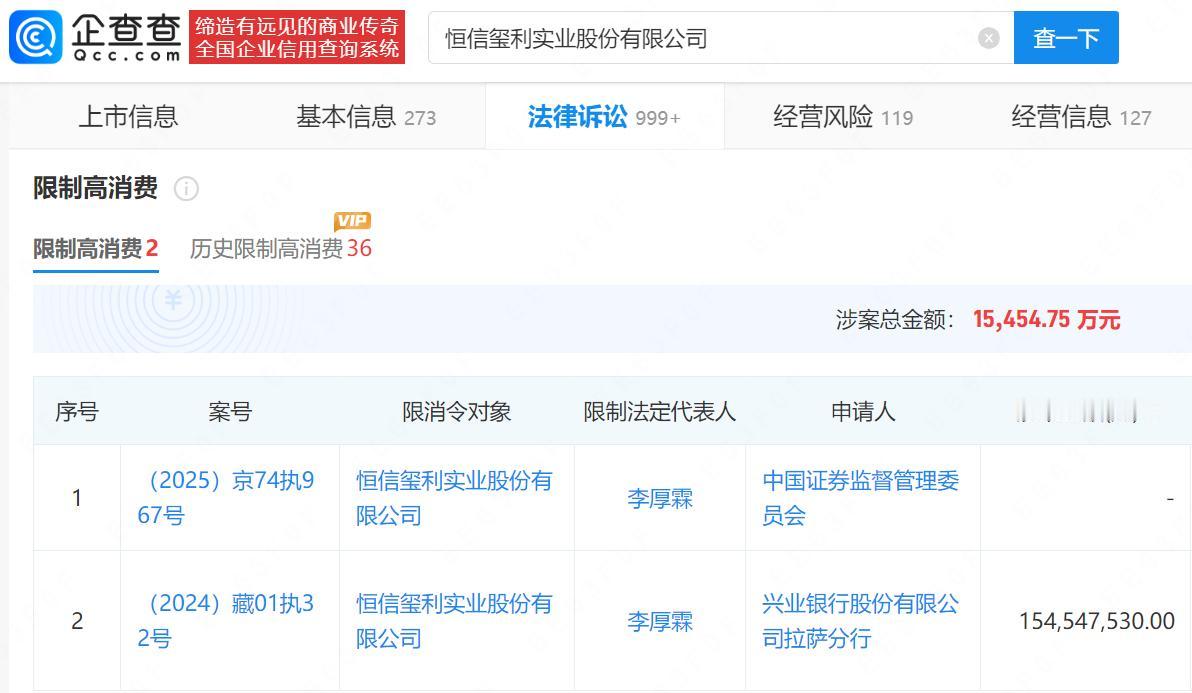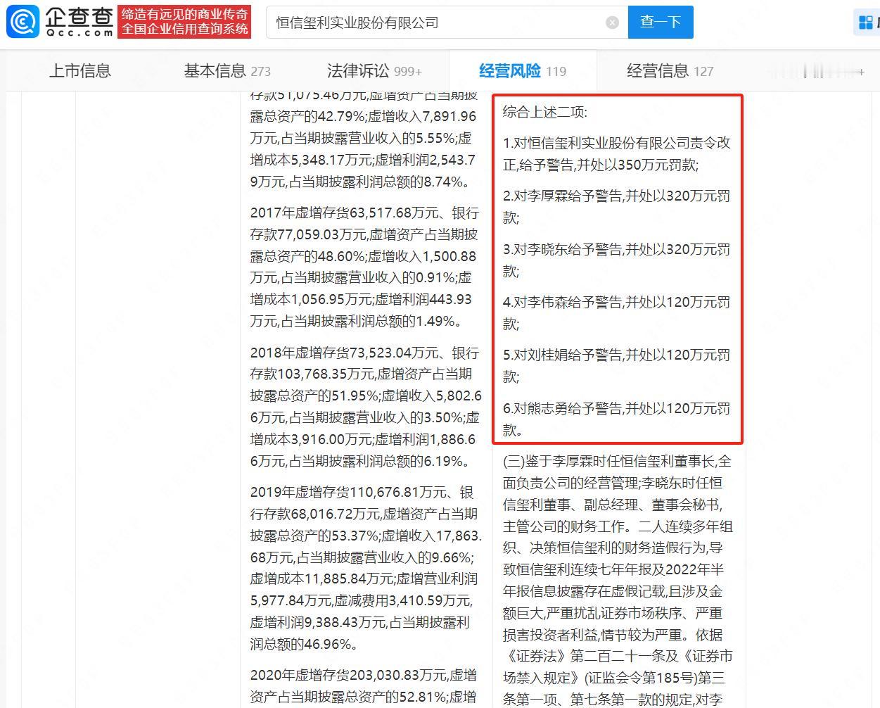 【IDo关联公司曾因财务造假被罚350万】IDo关联公司成老赖据媒体报道,近日,有消费者发文称2023年以12万余元的价格购入的I DO钻戒回收价不到3万元,引发网友热议,I DO官博已在2024年6月25日停止更新。女子称12万IDo钻戒回收价2.8万 企查查APP显示,I DO钻戒关联的恒信玺利实业股份有限公司成立于2007年9月,注册资本约2.1亿元,由恒信正隆经贸有限责任公司、天津红杉资本投资基金中心(有限合伙)等共同持股。2024年年报信息显示,该公司为停业状态。值得注意的是,去年6月,恒信玺利因披露的2015年至2021年年度报告及2022年半年报存在虚假记载被中国证券监督管理委员会罚款350万元,相关责任人被罚1000万元。该公司现存2条限高信息,涉案总金额约1.55亿;2023年,因与上海亨冠装饰工程管理有限公司的装饰装修合同纠纷,恒信玺利被列为失信被执行人。