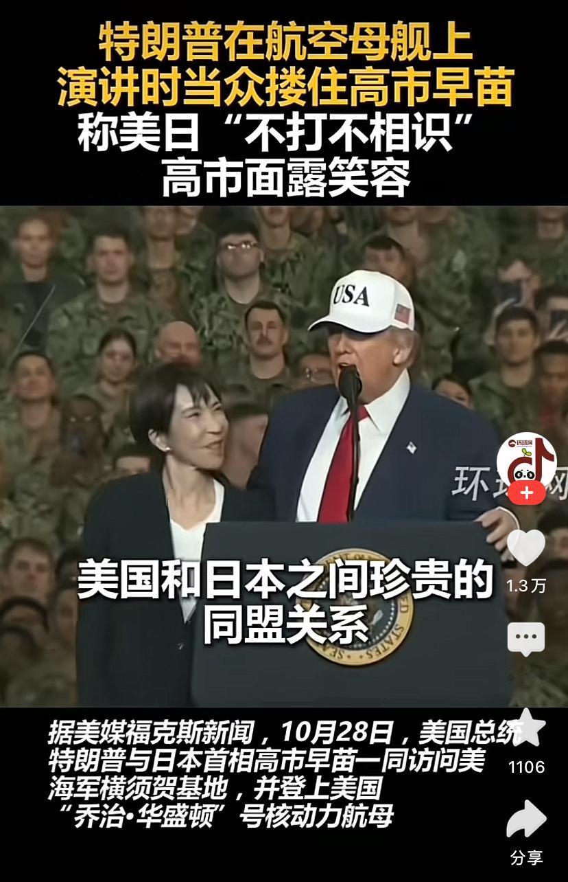 日本首相不嫌害臊,日本国民脸通红 太丢人了,美国总统特朗普访问日本在美国航空母舰上发表讲话说美日80年来最好的同盟关系,并称美军轰炸广岛和长崎只是小摩擦。 今年正好也是美国向日本广岛投放原子弹80周年,当时导致的死亡人数约为20万,其中直接死亡约7万至8万人,间接死亡因辐射等因素后续增加至20万。日本人应该不会忘记吧,美国应该也记得。美国特朗普竟然风趣的说小冲突,日本首相似乎也不在乎,毕竟她也没有经历过。 日本首相这次接待特朗普的献媚行为太有失身份,被特朗普又搂又抱,挽着胳膊摸着小手,又陪特朗普在房间看球,一个女首相跟别国男总统这样的身体亲密接触,应该很少见,曾经遭受过美国的伤害且造成同胞死伤几十万,日本首相不顾屈辱去献媚美国,日本国内民众估计意见会很大。一个国家没有尊严且忘记屈辱是不值得尊重的。日本新左翼 日本特朗普 高木早苗 早苗幸子 高七早苗 高世早苗 日本股指