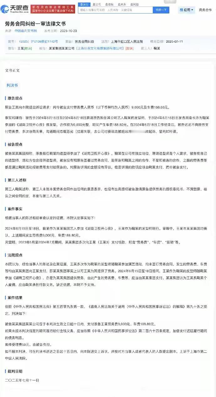 娱乐行纸醉金迷、日进斗金,没想到连发型师9000块钱的劳务费都要“推诿扯皮”,非要打了官司才给[吃瓜群众]看来,丝芭传媒的刻薄吝啬,一如既往,难怪粉丝长期“呼吁倒闭” 或许,唯一的好处就是——48还算有底线,没有干些“逼良为娼”的勾当,只坑钱、不害命[可怜]